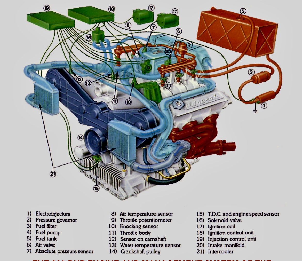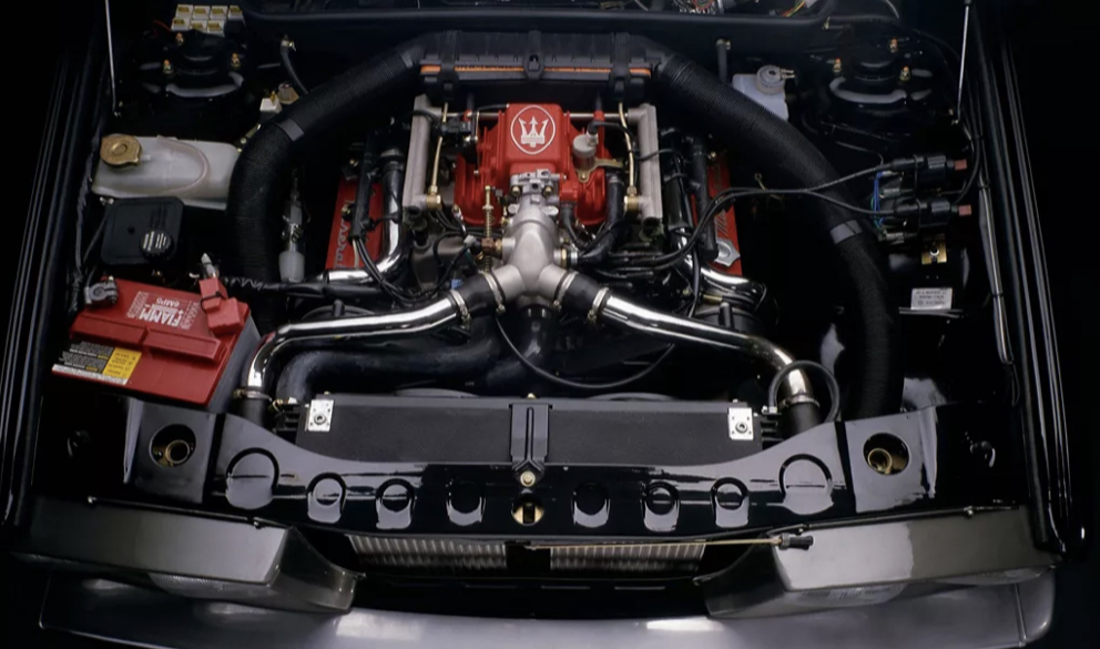 Ces moteurs à injection sans intercooler furent utilisés dans la gamme Biturbo sous l’appellation Biturbo i vers 1986, 1987, soit au début de l’arrivée de l’injection avant que les deux intercooler air-air (un de chaque côté devant le radiateur d’eau) ne se généralisent à toute la gamme :