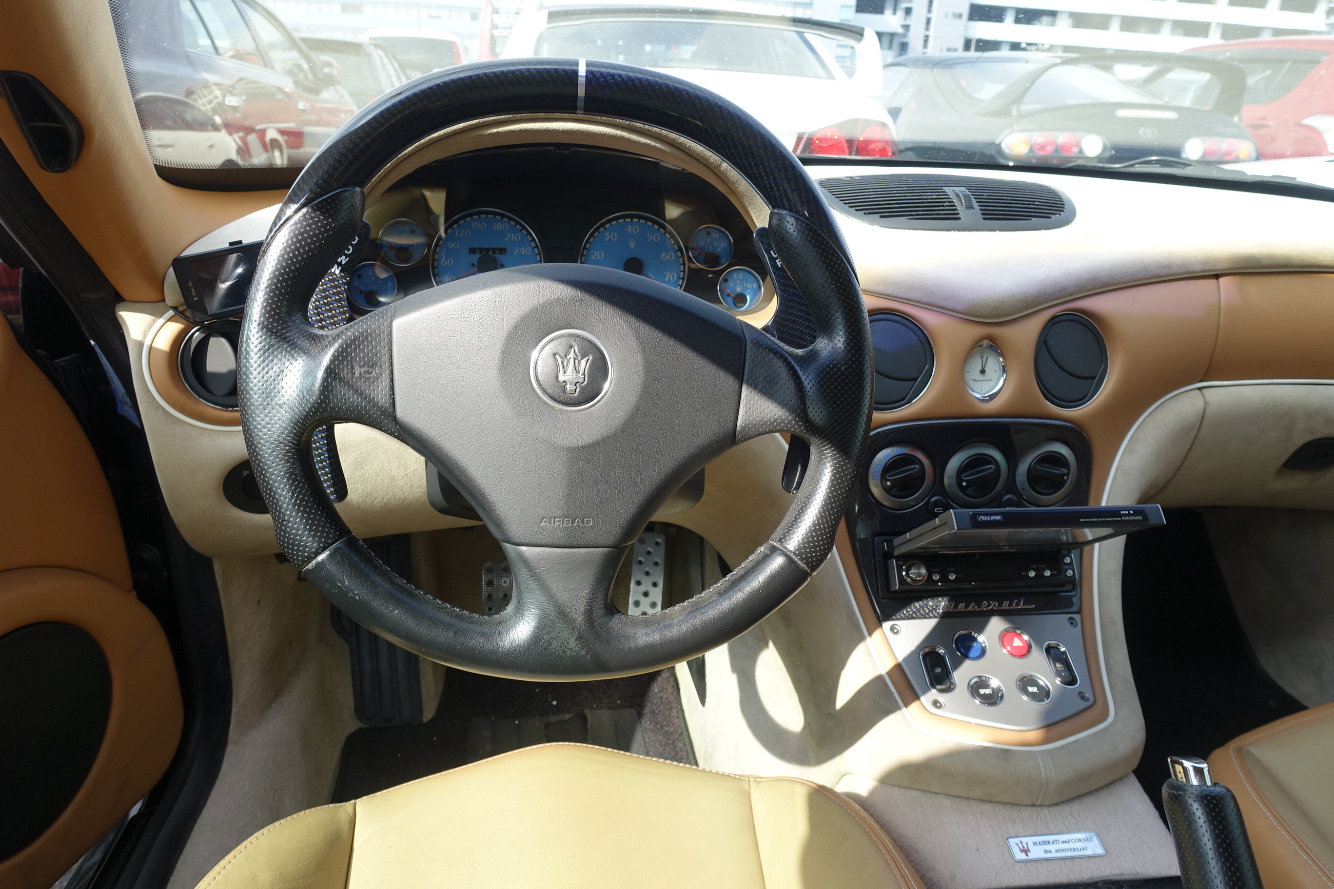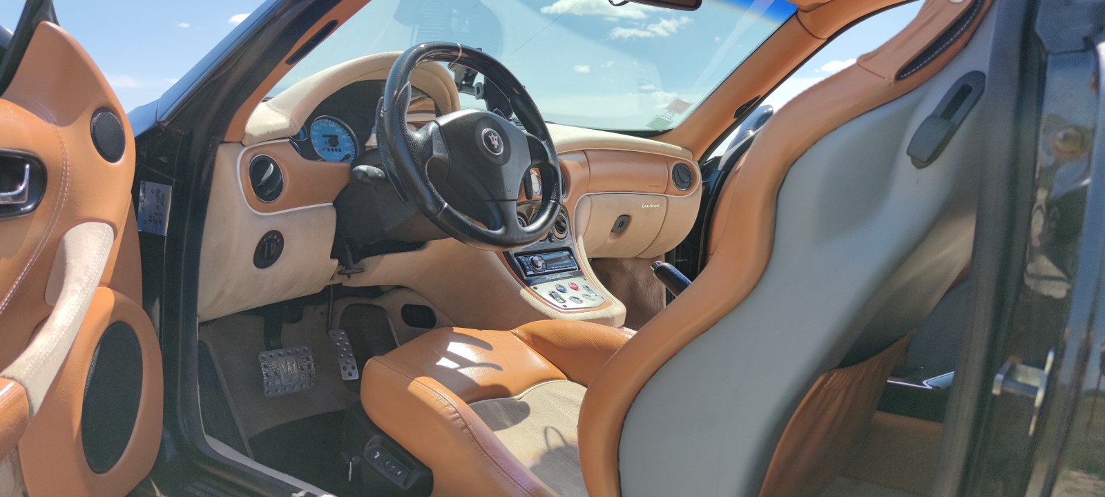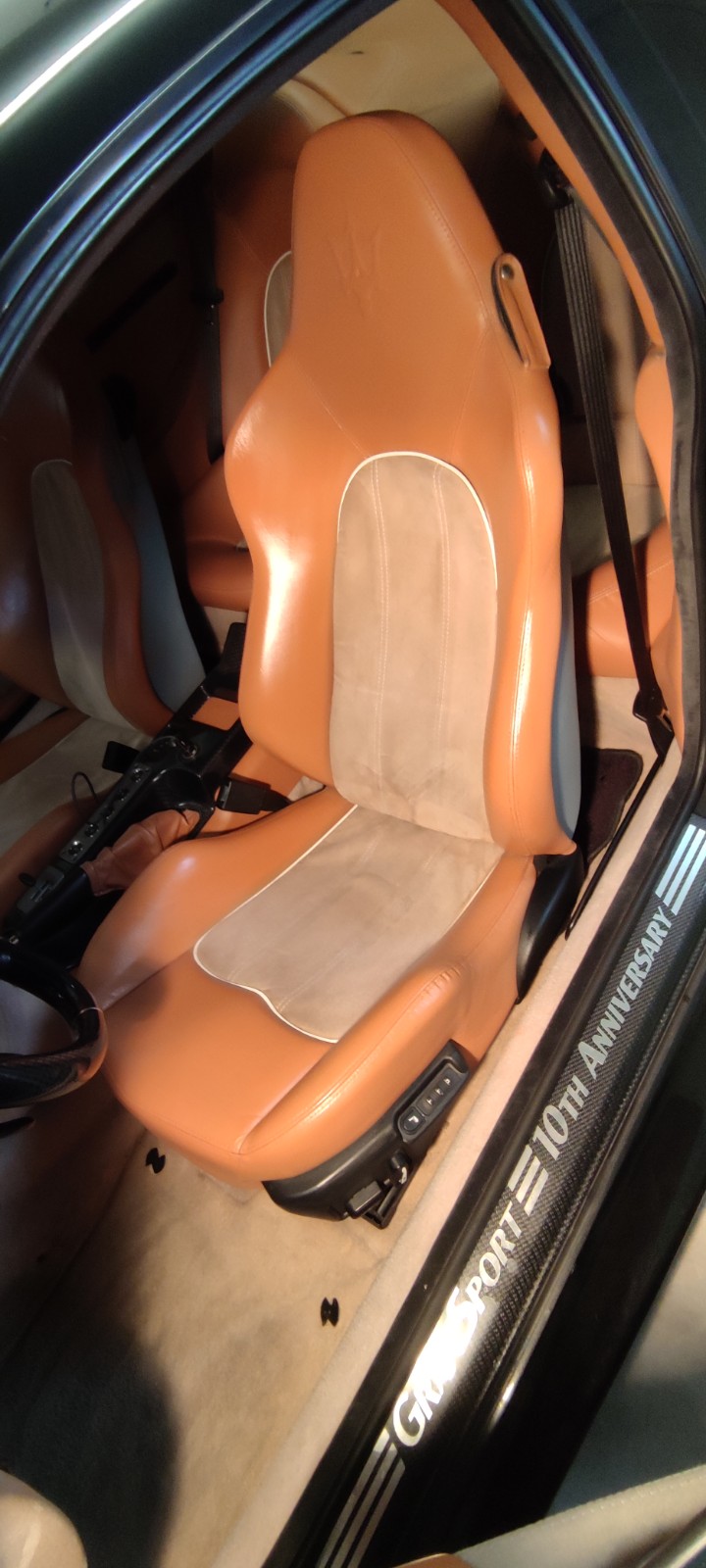Pour les cuirs, je n'ai pas osé démonter tout l'intérieur comme Cooldent ! j'ai donc tout laissé en place et traité avec des produits colourlock, essence nettoyante et/ou savon cuir selon les endroits, coloration colourlock que cooldent avait donné Maserati "cuoio", lotion protectrice et scellement cuir.