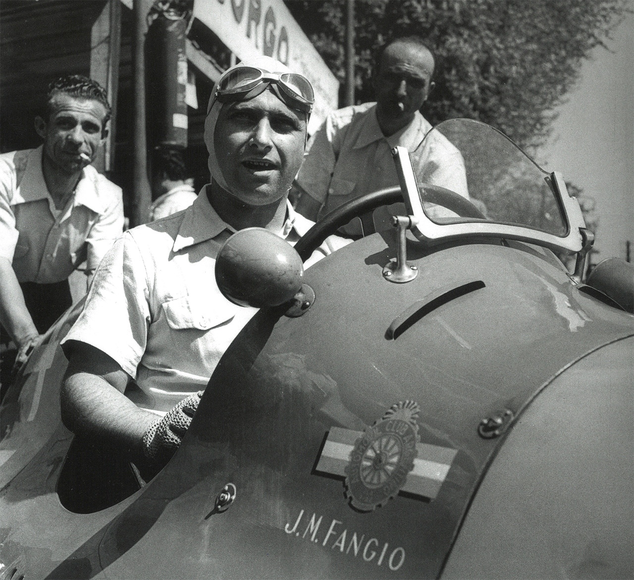 Alfa Romeo l'engagea comme pilote usine en 1950 pour le premier championnat de Formule 1 que Fangio termina second derrière Nino Farina aussi sur Alfa Romeo. La première couronne mondiale de Fangio sera en 1951 sur Alfa Romeo, en 1952 il se brise une vertèbre cervicale et ne peut concourir, en 1953 il est second sur Maserati A6GCM, en 1954 il est à nouveau champion du monde de Formule 1 sur Maserati et Mercedes, en 1955 champion sur Mercedes, en 1956 champion sur Ferrari, en 1957 champion sur Maserati 250F.