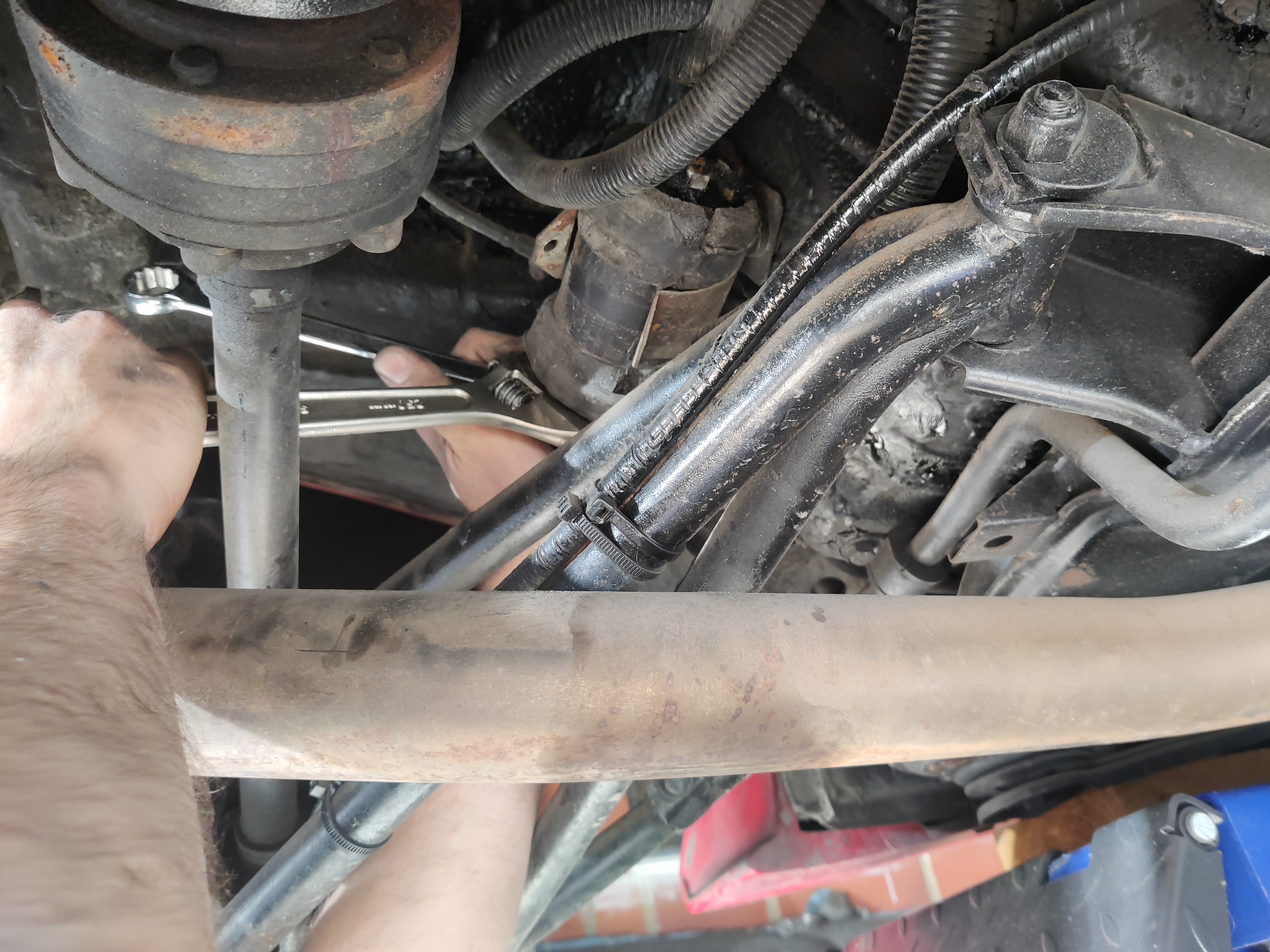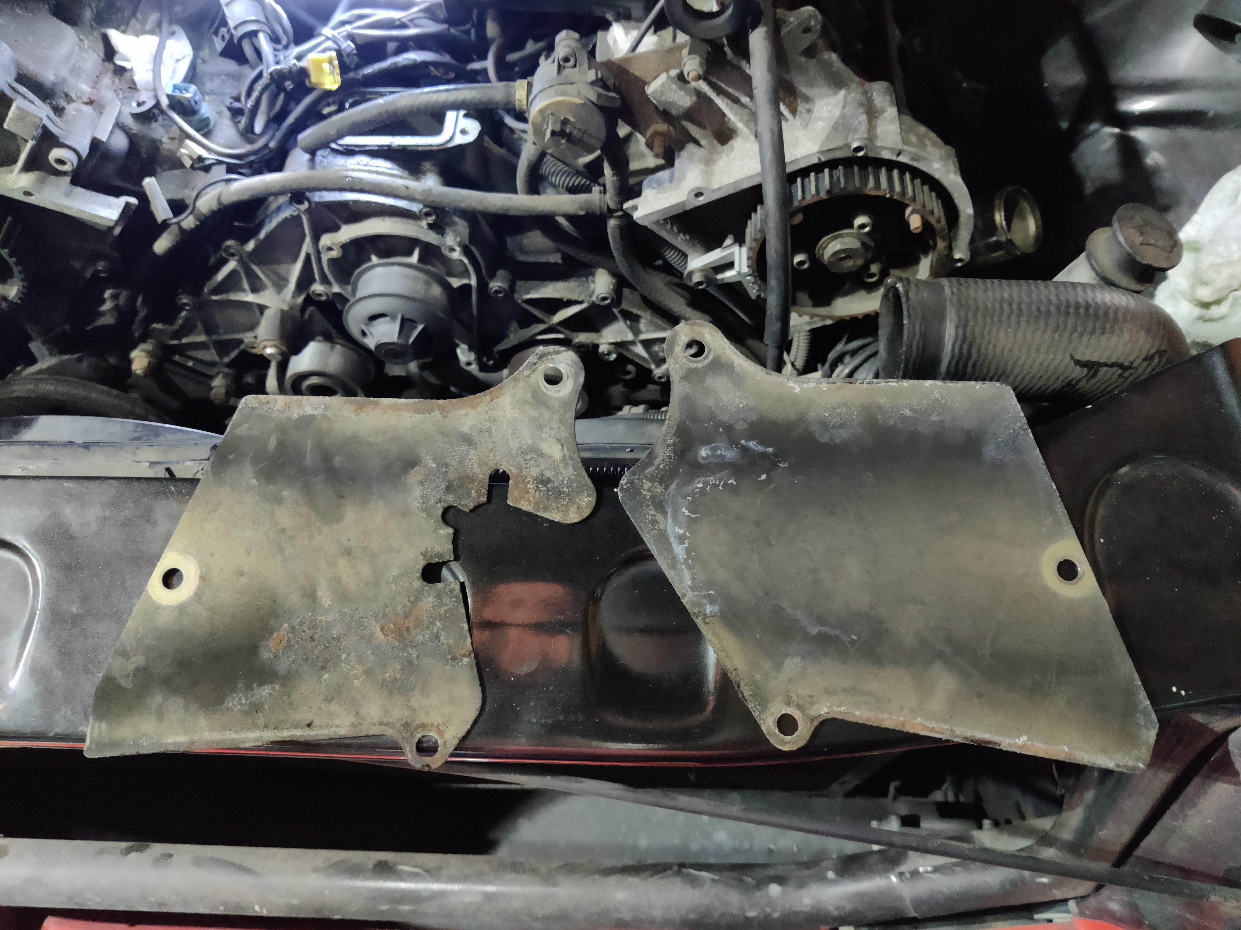 Passage dans la baie moteur pour avancer sur la distri.