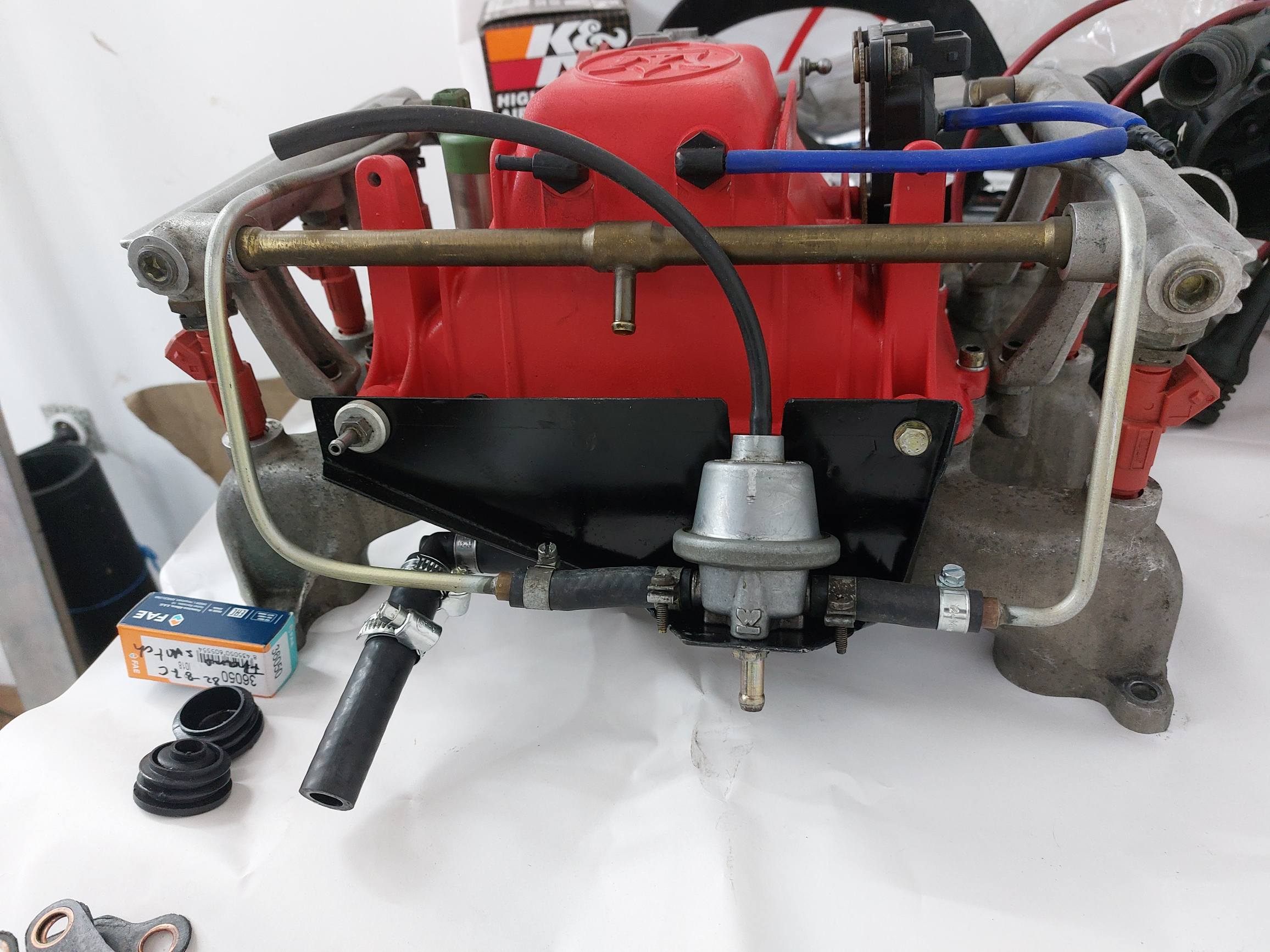Non, pourquoi changer le regulateur ? Il est bien et réglable. J'ai juste fait un support en tôle. On ne voit pas le regulateur parce qu'il est caché par la durite de recyclage des vapeurs d'huile qui passe par dessus.