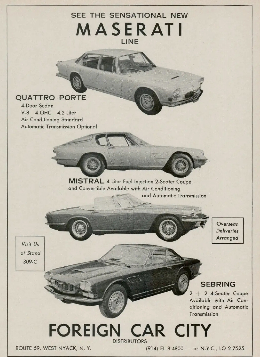 Dans le même genre, la pub « presse écrite » du concessionnaire de New York. On doit être en 1965 ou juste après car la Sebring est une serie 2 :