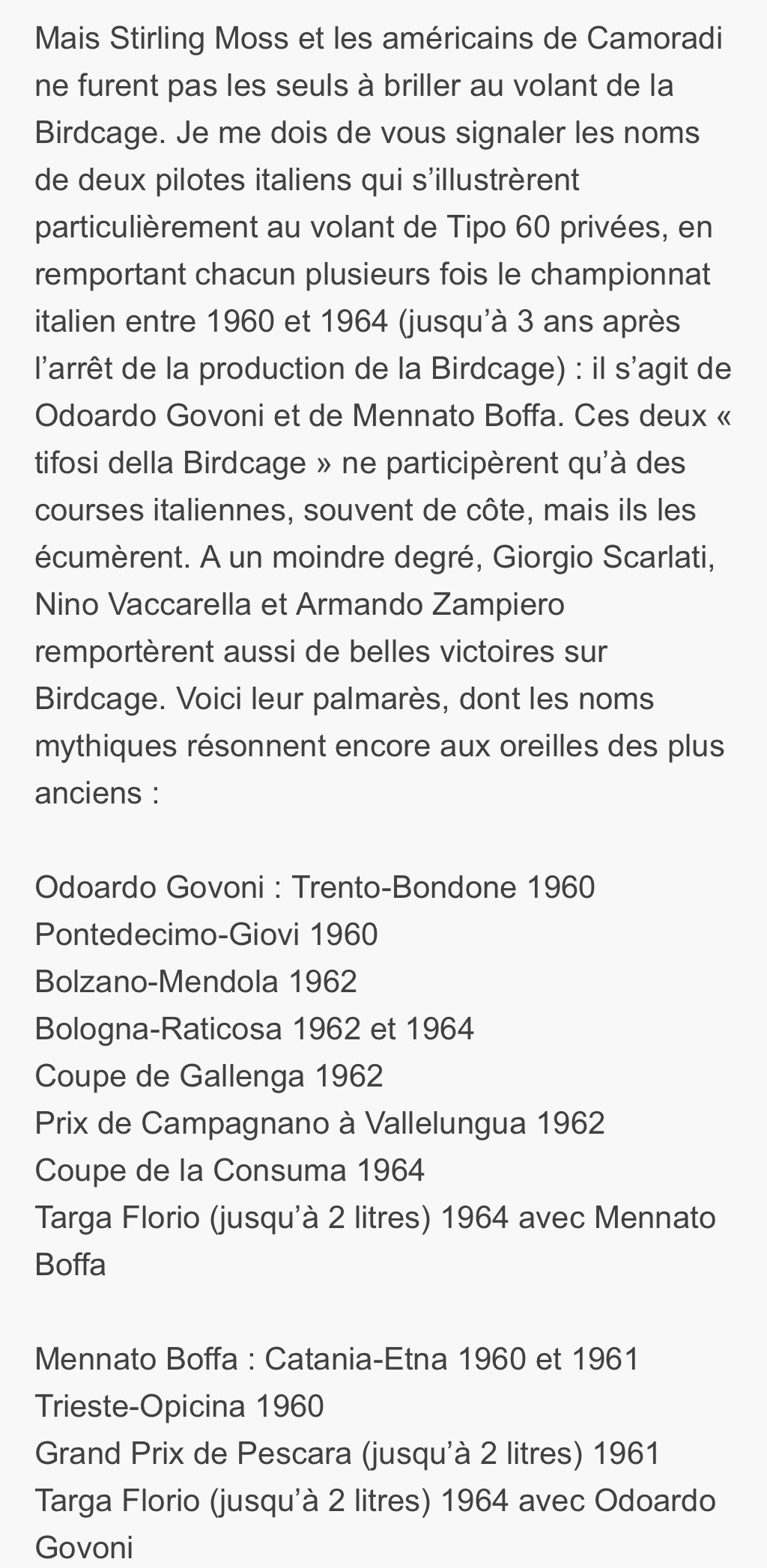 Edoardo. Govini a été de nombreuses fois champion d’Italie sur sa Birdcage 2 litres.