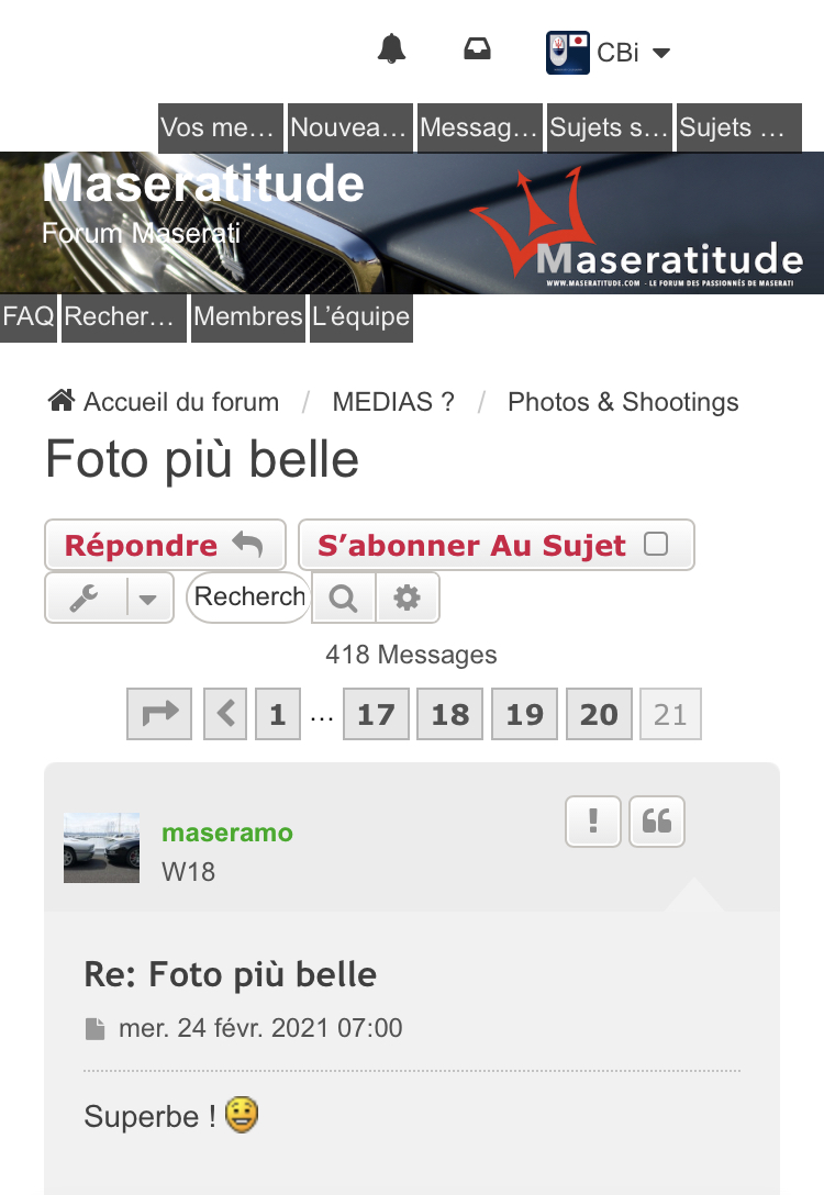 - toujours sur le bandeau, il serait peut-être préférable de ne pas afficher le titre "Maseratitude - forum Maserati" qui doublonne en moins bien avec le logo de droite.