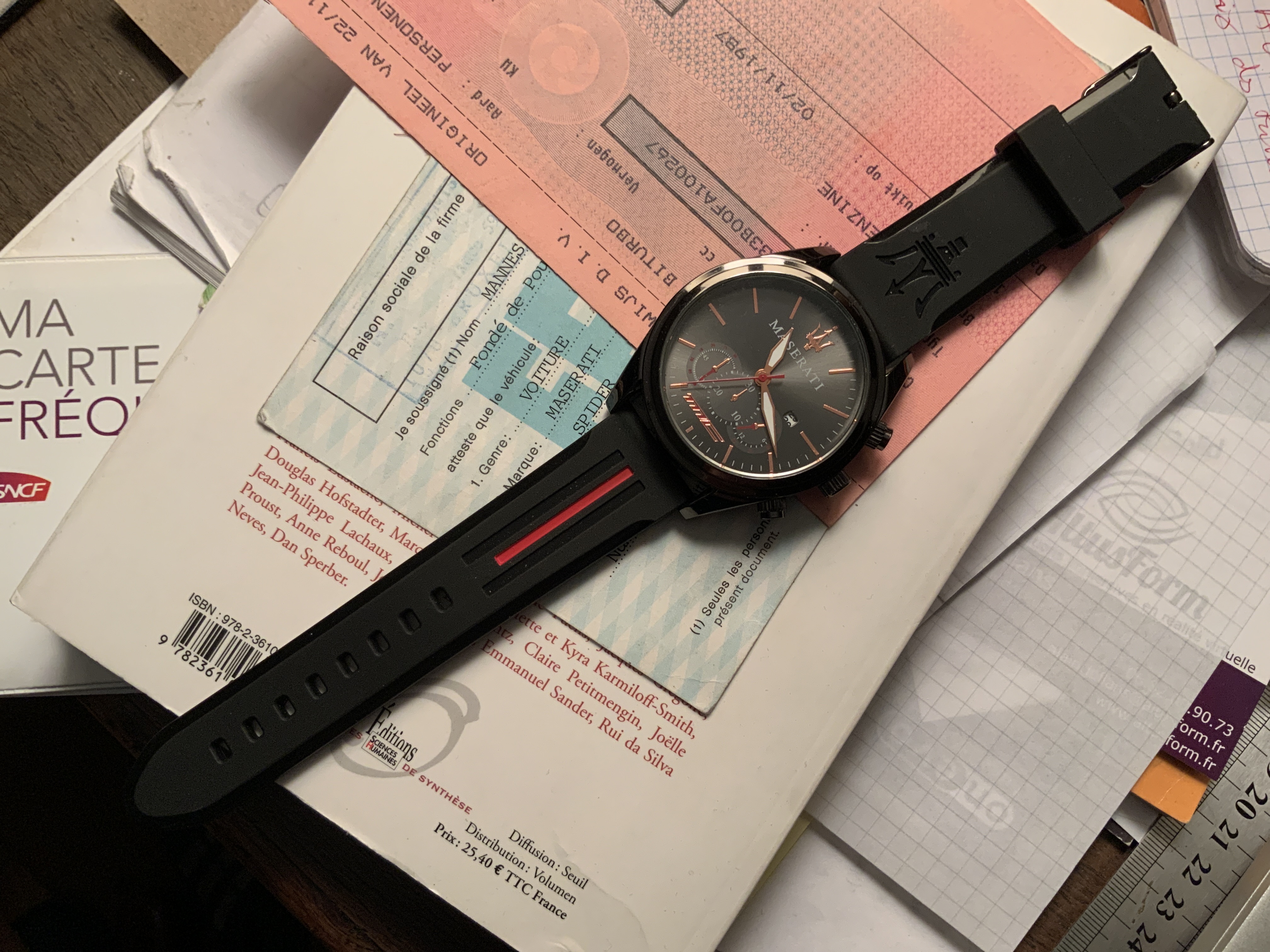 Etonnant tout de même que personne ne poste ici sa(ses) montre (s) Maserati alors que tous les gars que j'ai rencontré dans les rassemblements en ont une au poignet....
