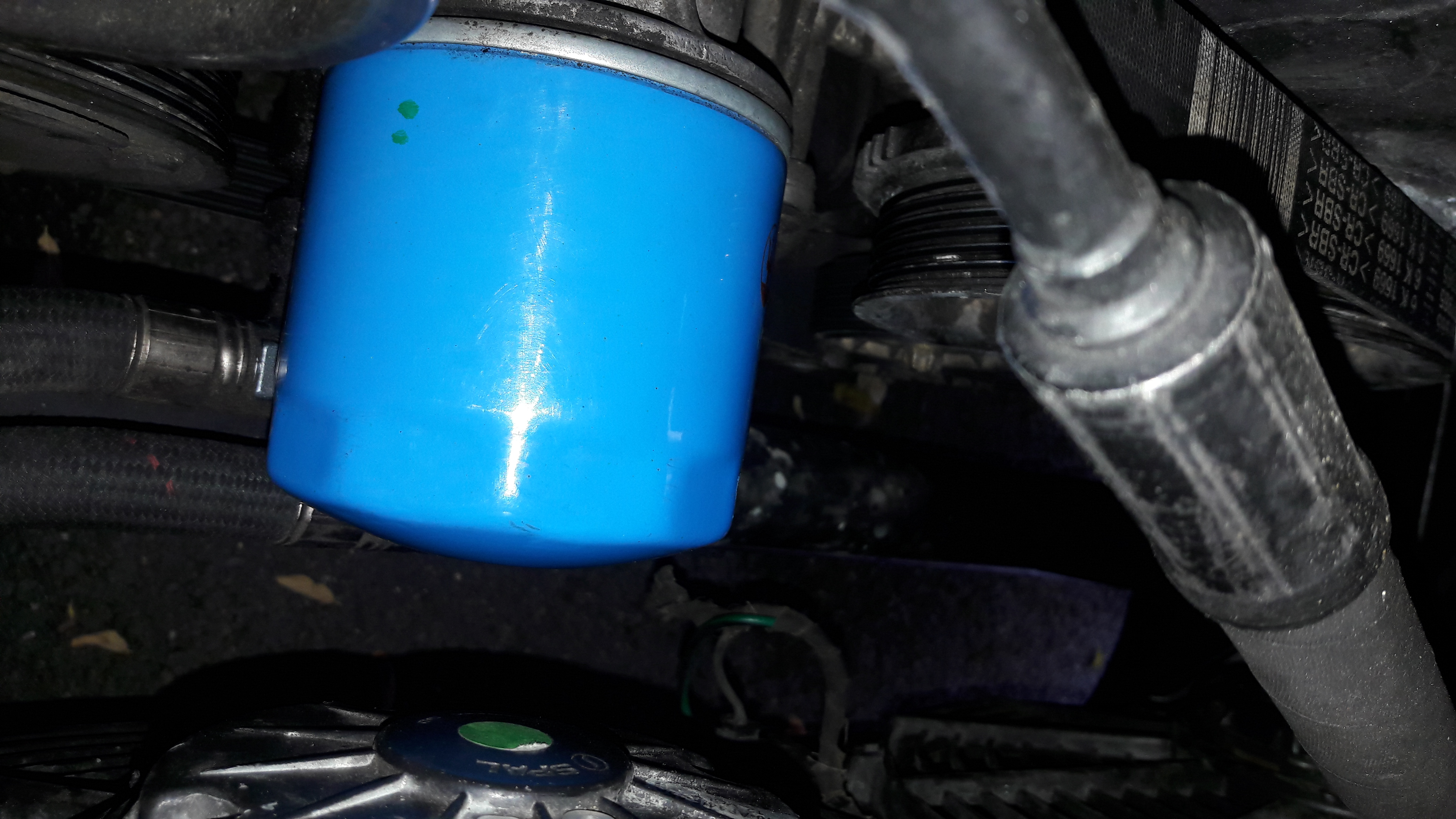 Je joins une photo du filtre à huile, qui ne me semble pas neuf (bague opaque, traces paraissant anciennes). Qu'en pensez-vous ? (je l'ai essuyé pour mieux voir)