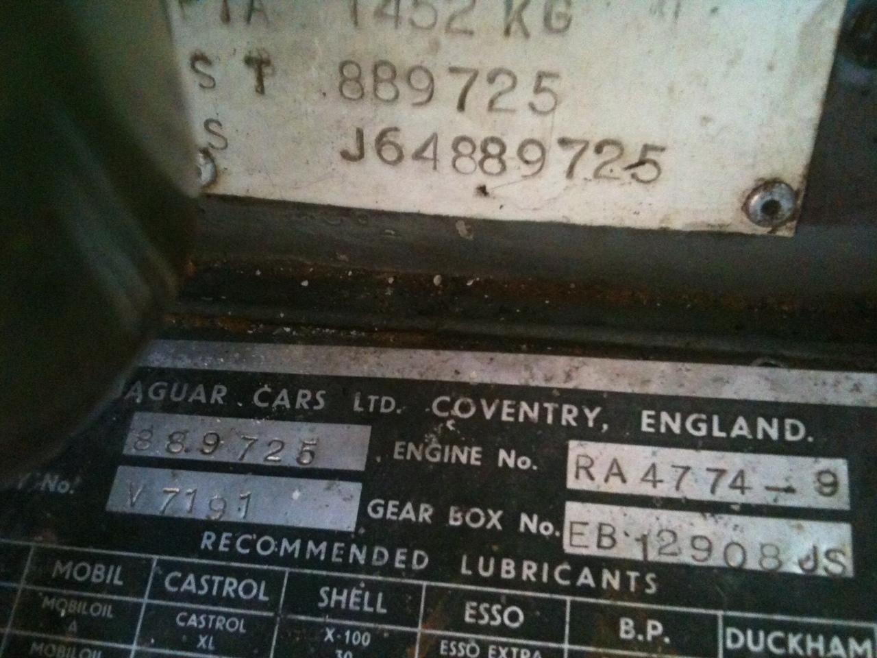 Véhicule importé des US, plaquette rajoutée en France en ajoutant J64 devant le n° de chassis (J pour Jaguar, 64 pour l'année d'immatriculation)