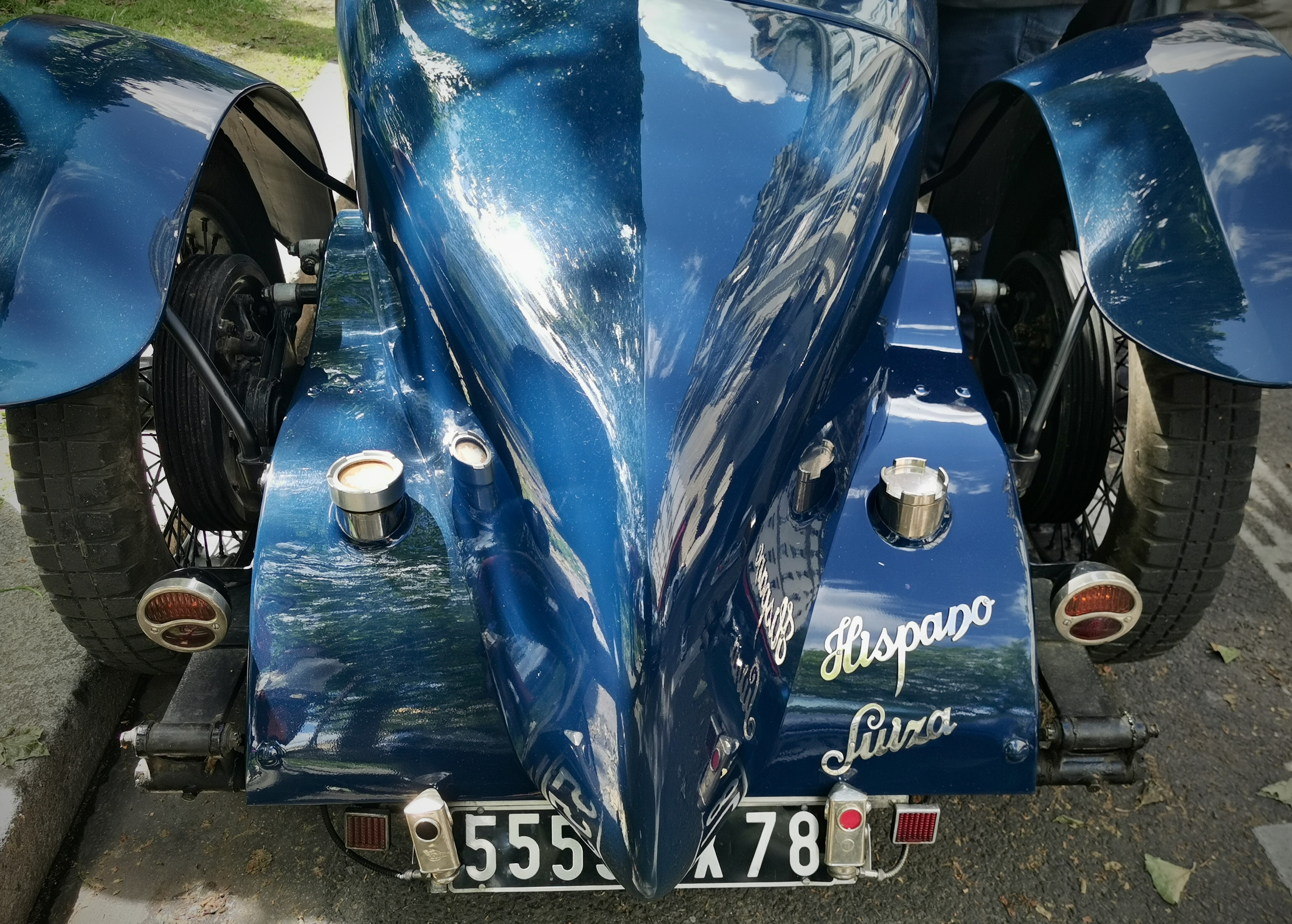Jusqu'à la fabrication soignée du ventilo à 4 pales, le bloc peint, les phares, attaches de capot, cadre du réservoir et trompes en métal chromé, la cigogne, l'intérieur cuir et métal,... pas bcp de plastique dans cette voiture de sport de luxe de l'époque!