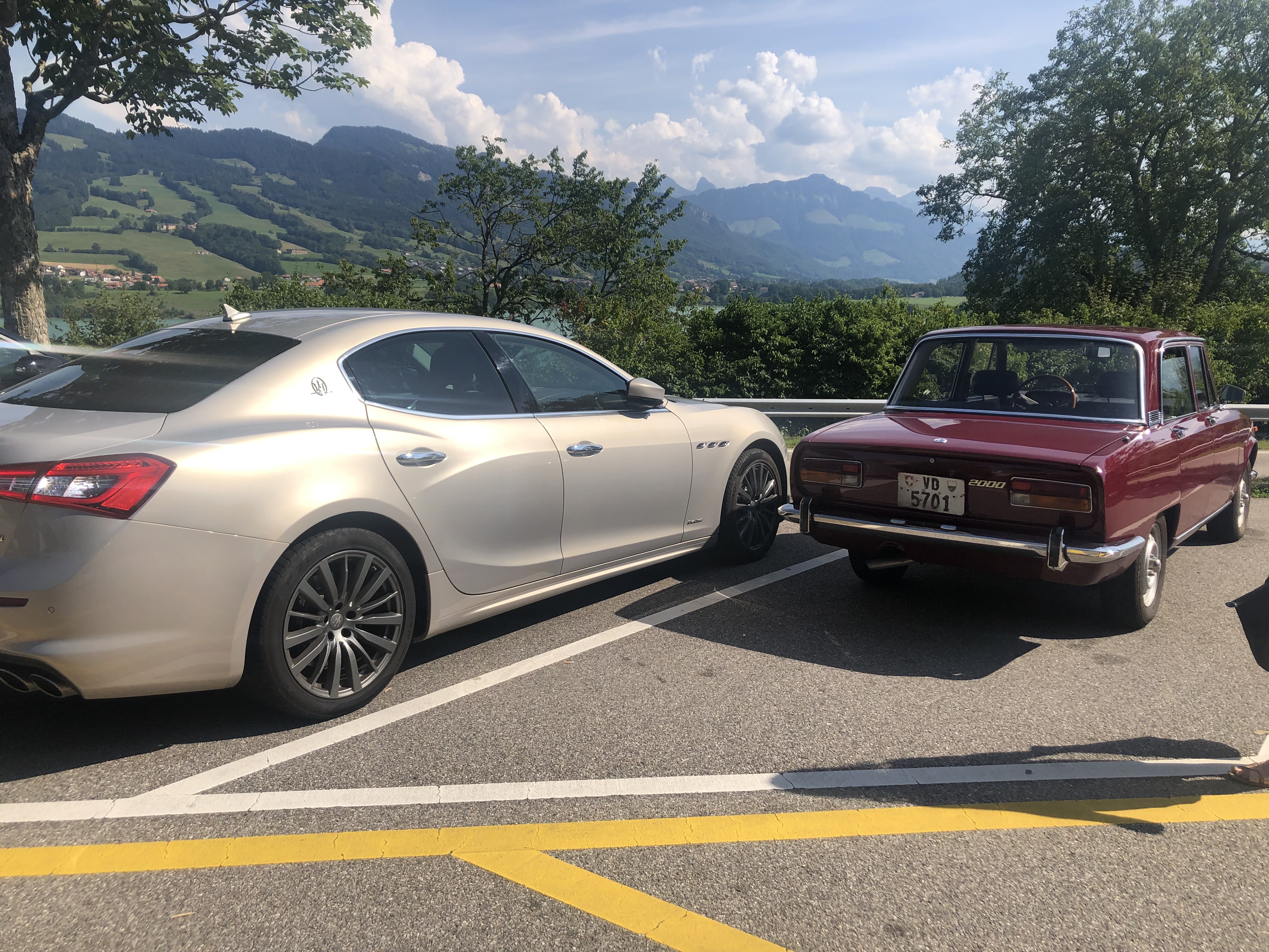 Déjà nous: on était 2 voitures, la 164 de Fred qui me drivait, et Cirino en Giulia. Et puis: La Lotus Emira est vraiment magnifique, mais comme nous l'a dit Fred, on n'en verra pas beaucoup