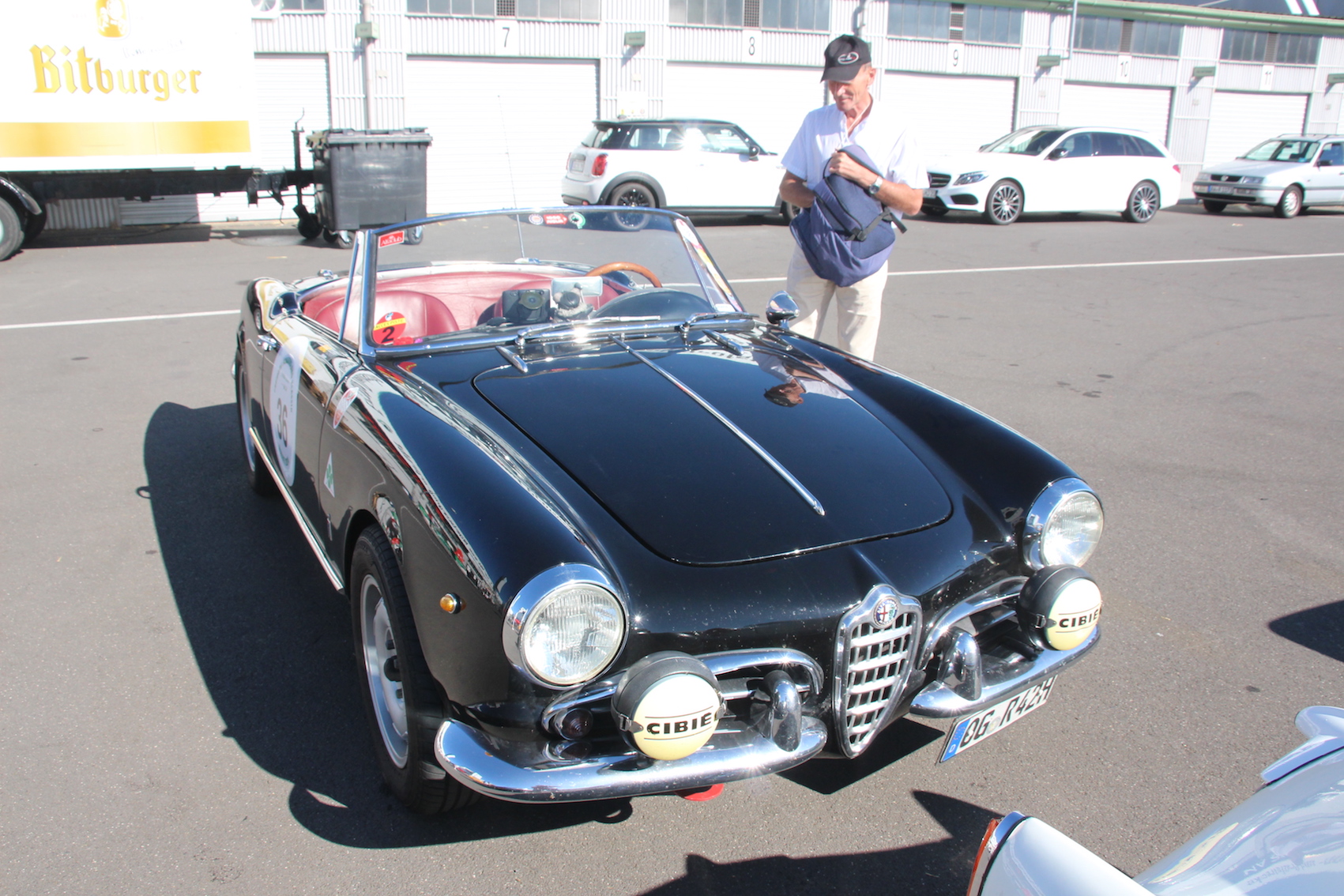 Thème : US et sportives. J'y suis allé en Spyder, avec Remy et son Alfetta 1600 GT. Une centaine de voitures, quelques stands tatoo, sellier,
