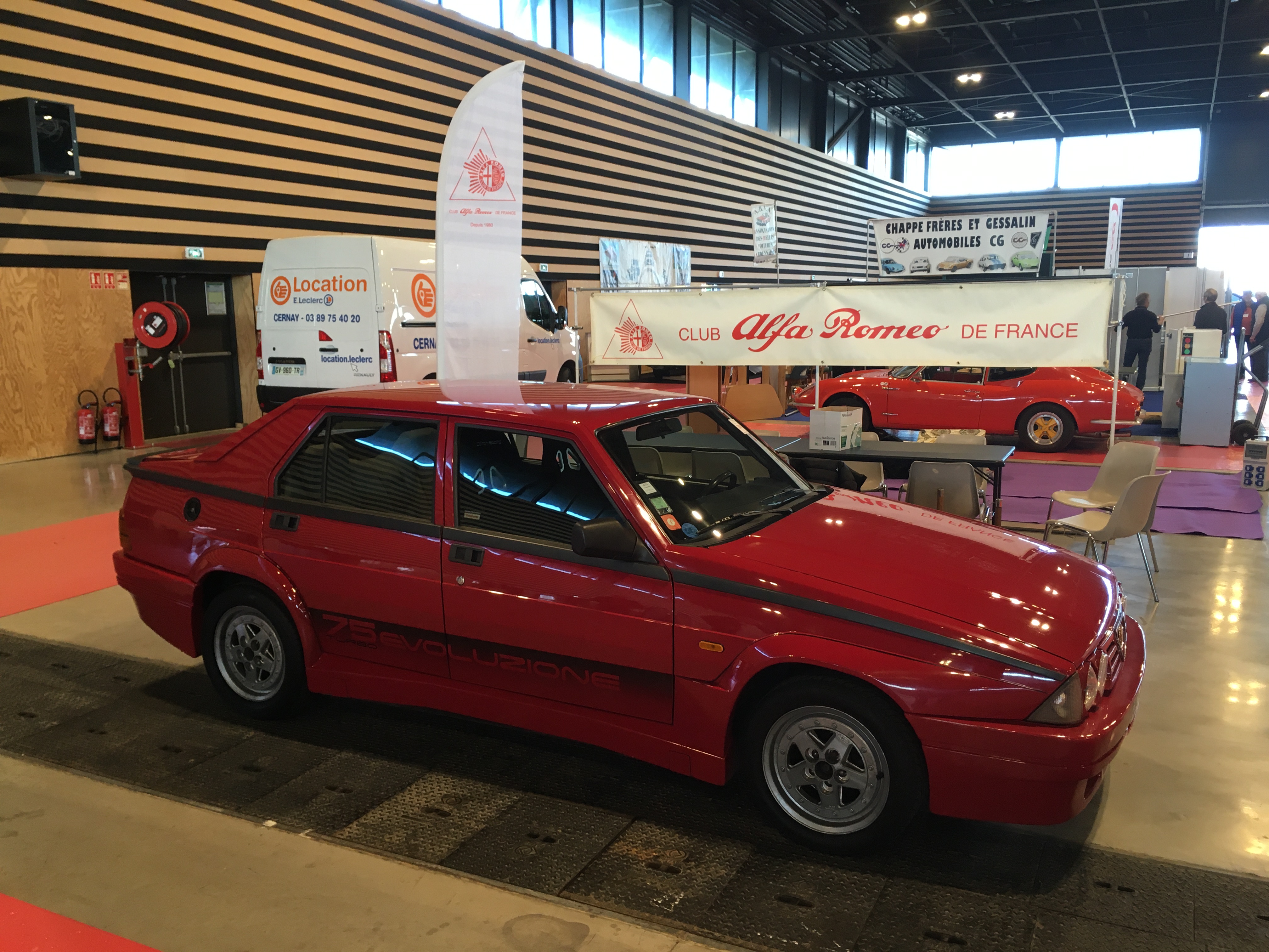 Nous exposions une rare 75 turbo Evoluzione, version spéciale pour l'homologation, 500 produites, il en resterait 200, et une valeur de 50 K...