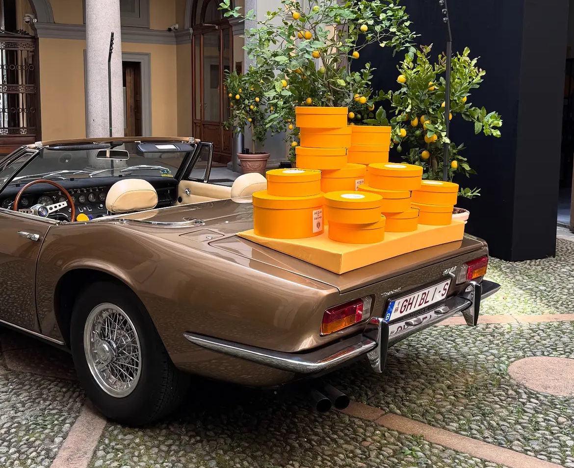 Toujours le partenariat Maserati - Acqua di Parma. Pas mal la Ghibli Spyder comme camionnette de