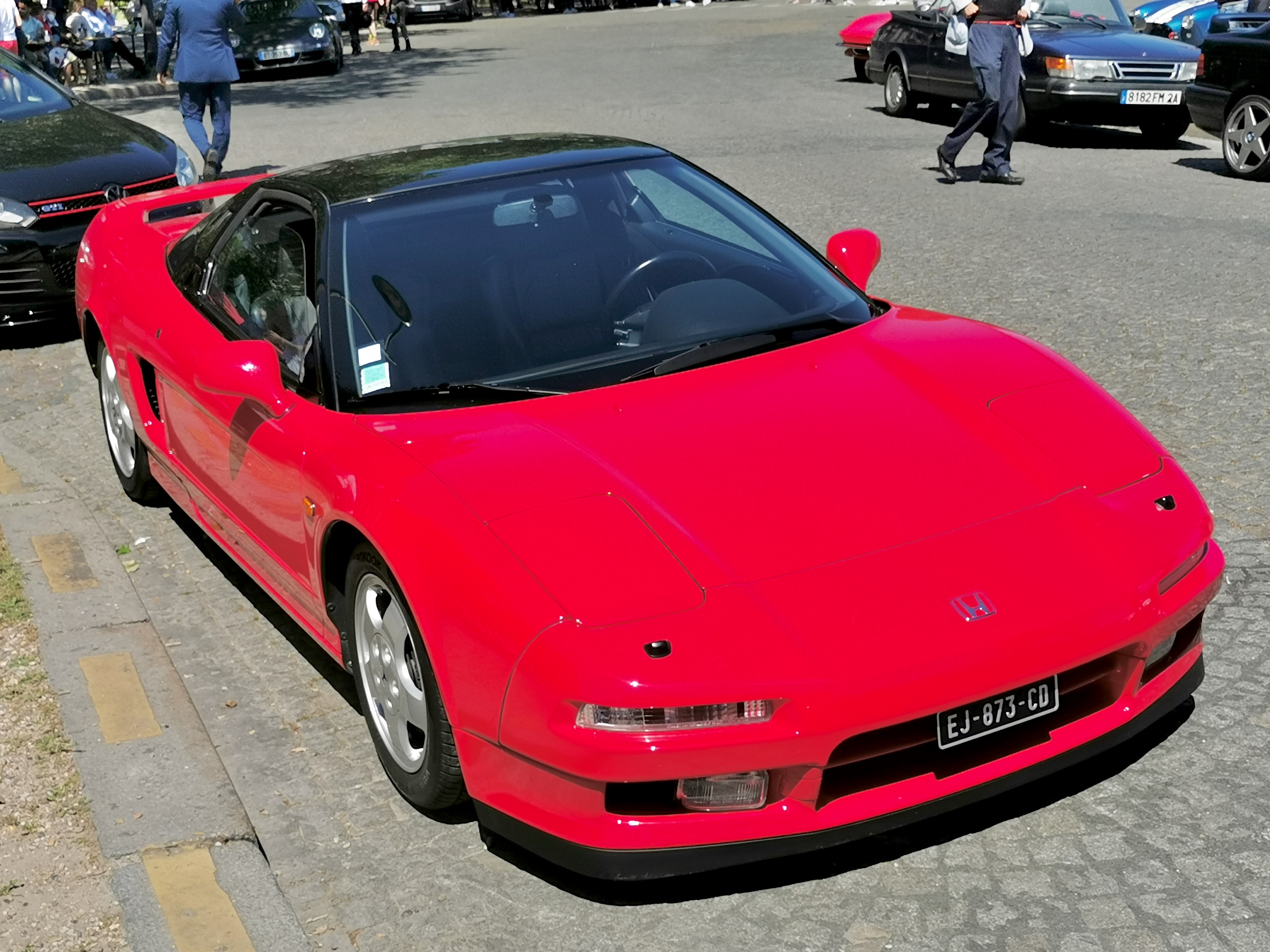 Une Ferrari qui fait grise mine face à la NSX qui lui a piqué la couleur :D