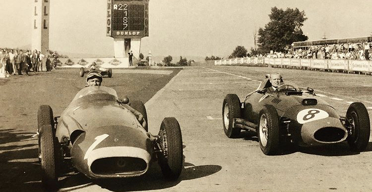 Juan Manuel Fangio sur Maserati 250F contre Mike Hawthorn sur Ferrari 801 en 1957 au Nurburgring :