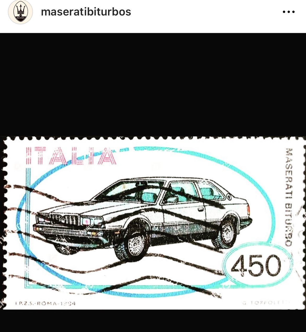 Timbre italien du début des années 80 en l’honneur de la Biturbo :