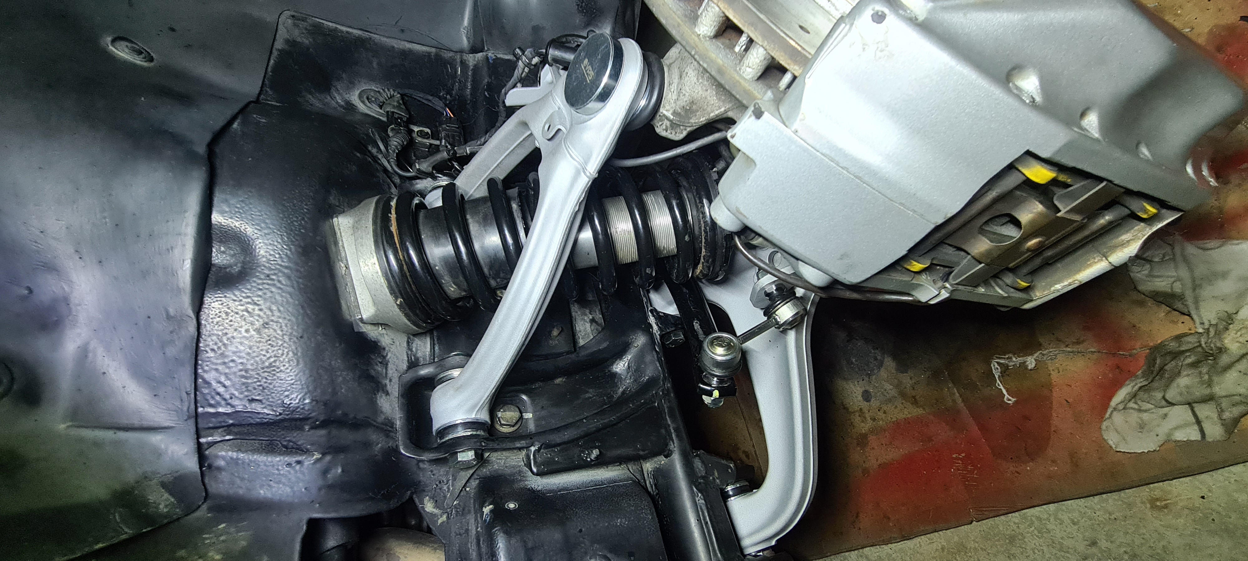 C'est beau quand c'est tout propre tout neuf : Triangle / silentblock / rotule / biellette de barre stab/ visserie j'ai même sablé et refait zingué les calles des triangles !!
