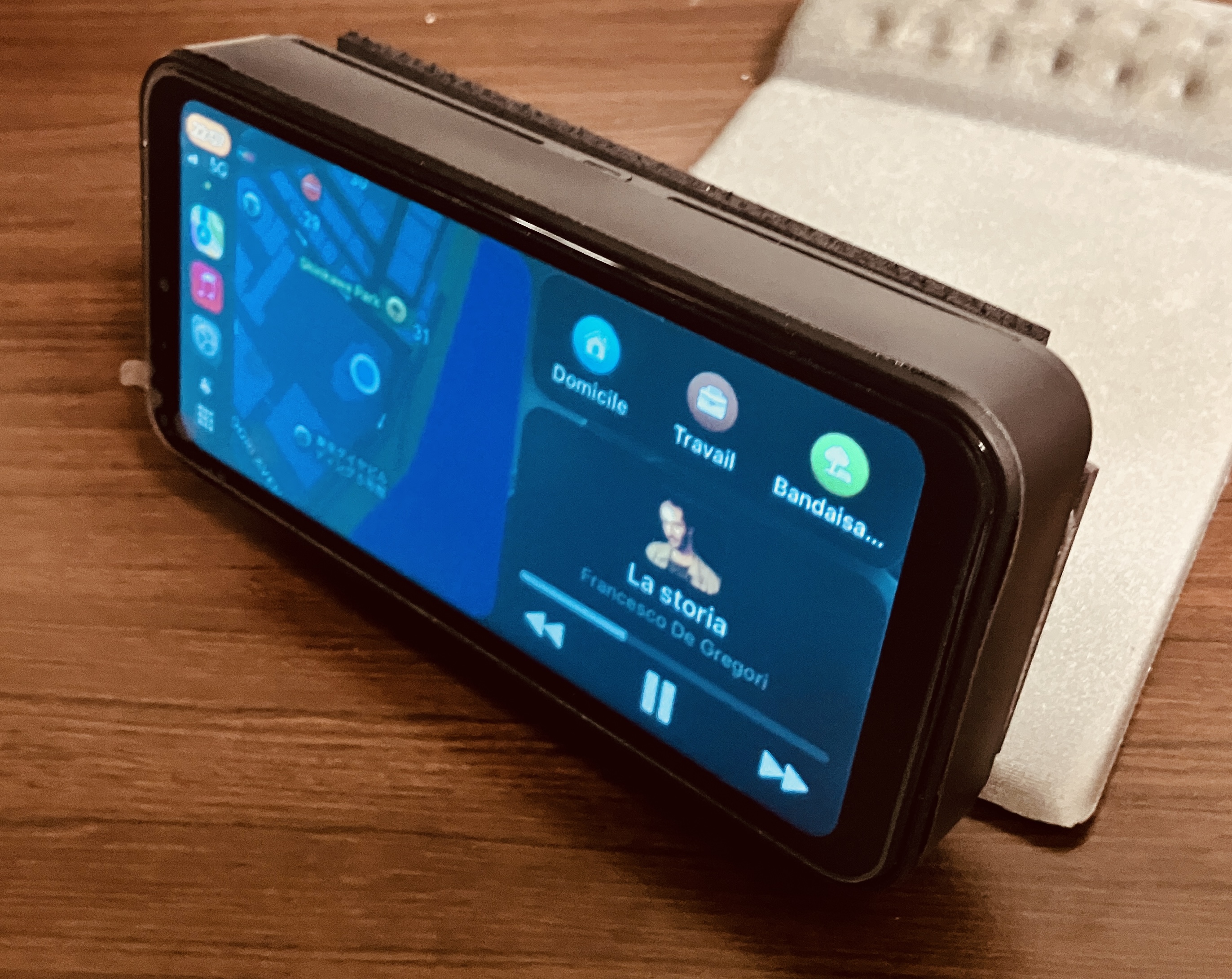 Donc à la réflexion, j'ai monté à l'arrière du boitier écran une batterie de 5000mAh, qui me permet d'utiliser le CarPlay toute une journée avant de passer à la recharge. Ça épaissit un peu le tout, mais du coup plus de besoin d'alim 12V.