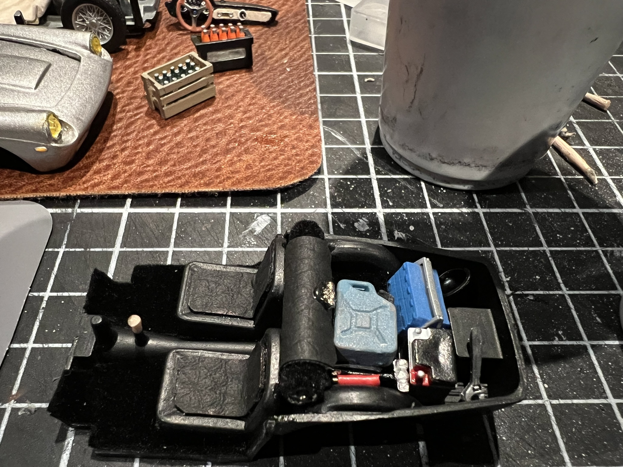 Le coffre contiendra des outils, un jerrycan, une batterie. Private joke :mrgreen: