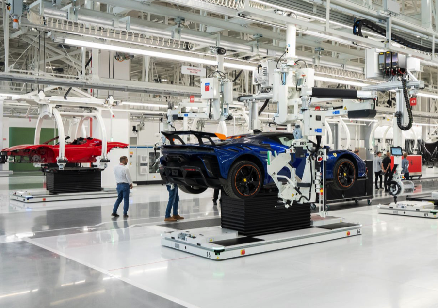 Il est possible qu'on se retrouve avec une configuration ''mixte", avec des chariots élévateurs pour partie, et la réapparition de quelques berceaux de manutention accrochés au toit, à l'image de la nouvelle usine Ferrari présentée l'an dernier.