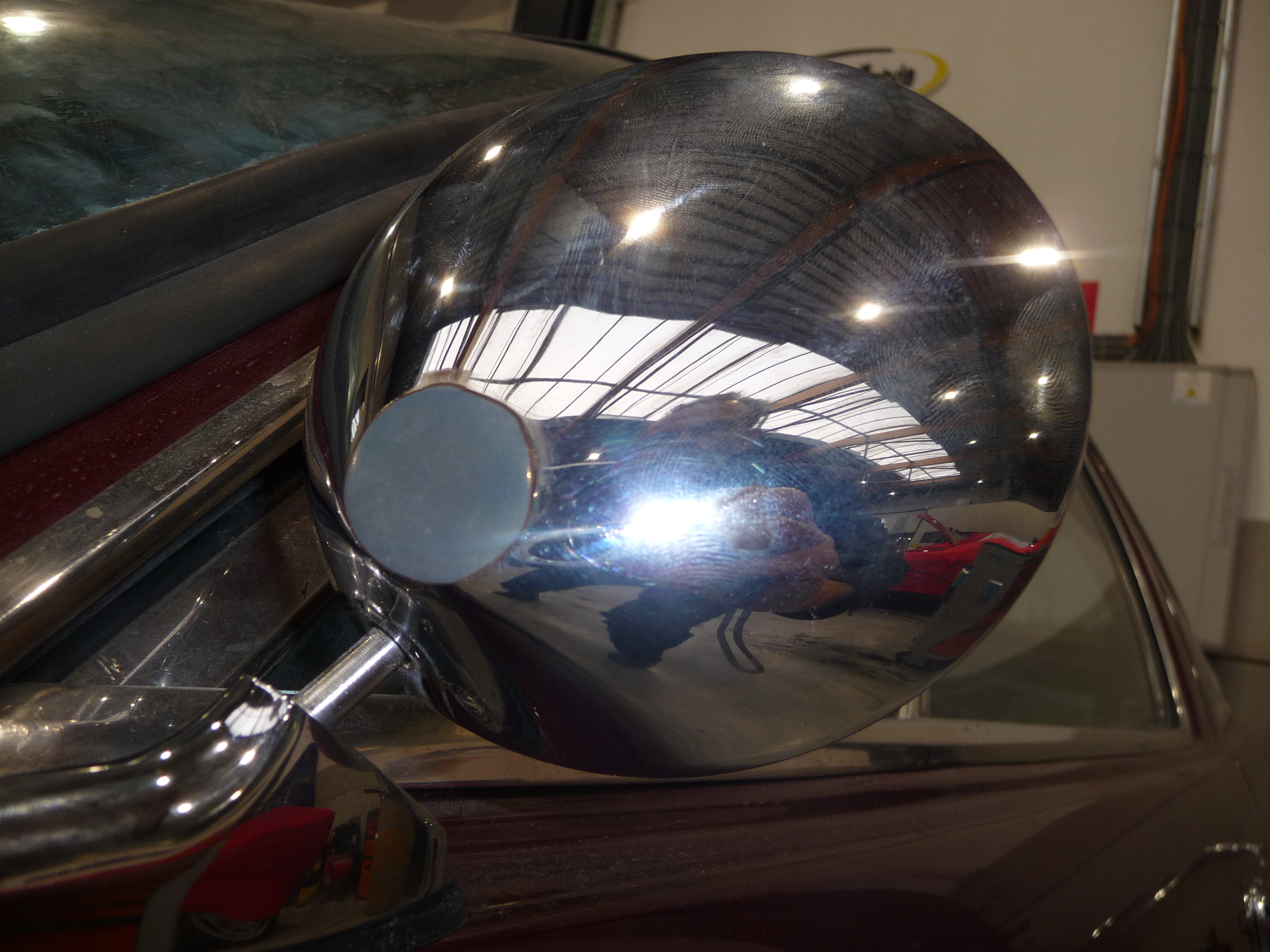 Je trouve ce modèle de rétro (une repro) discret et convenant bien à la voiture (il remplace les rétros en plastique noir très laids qui étaient montés avant):