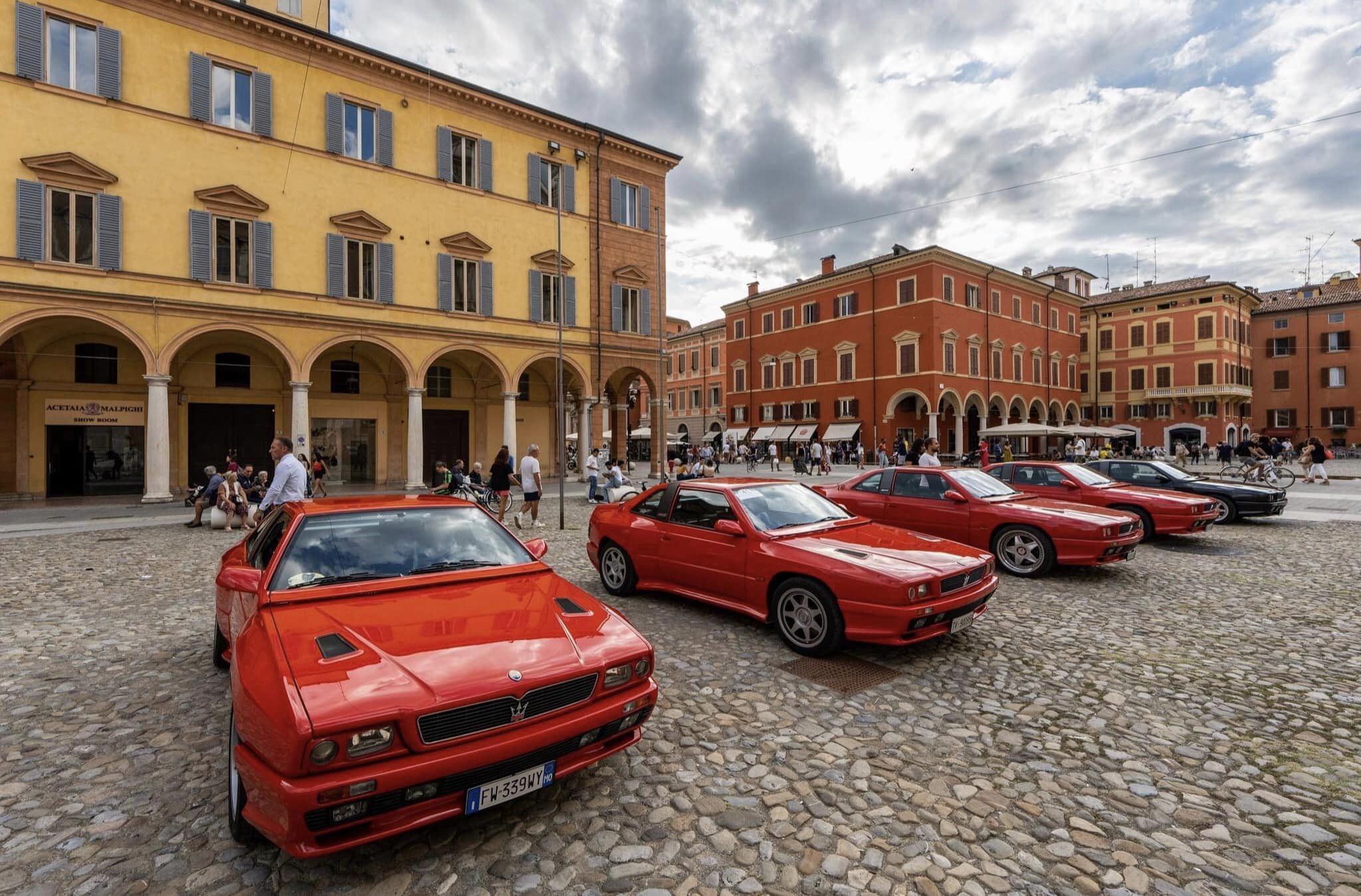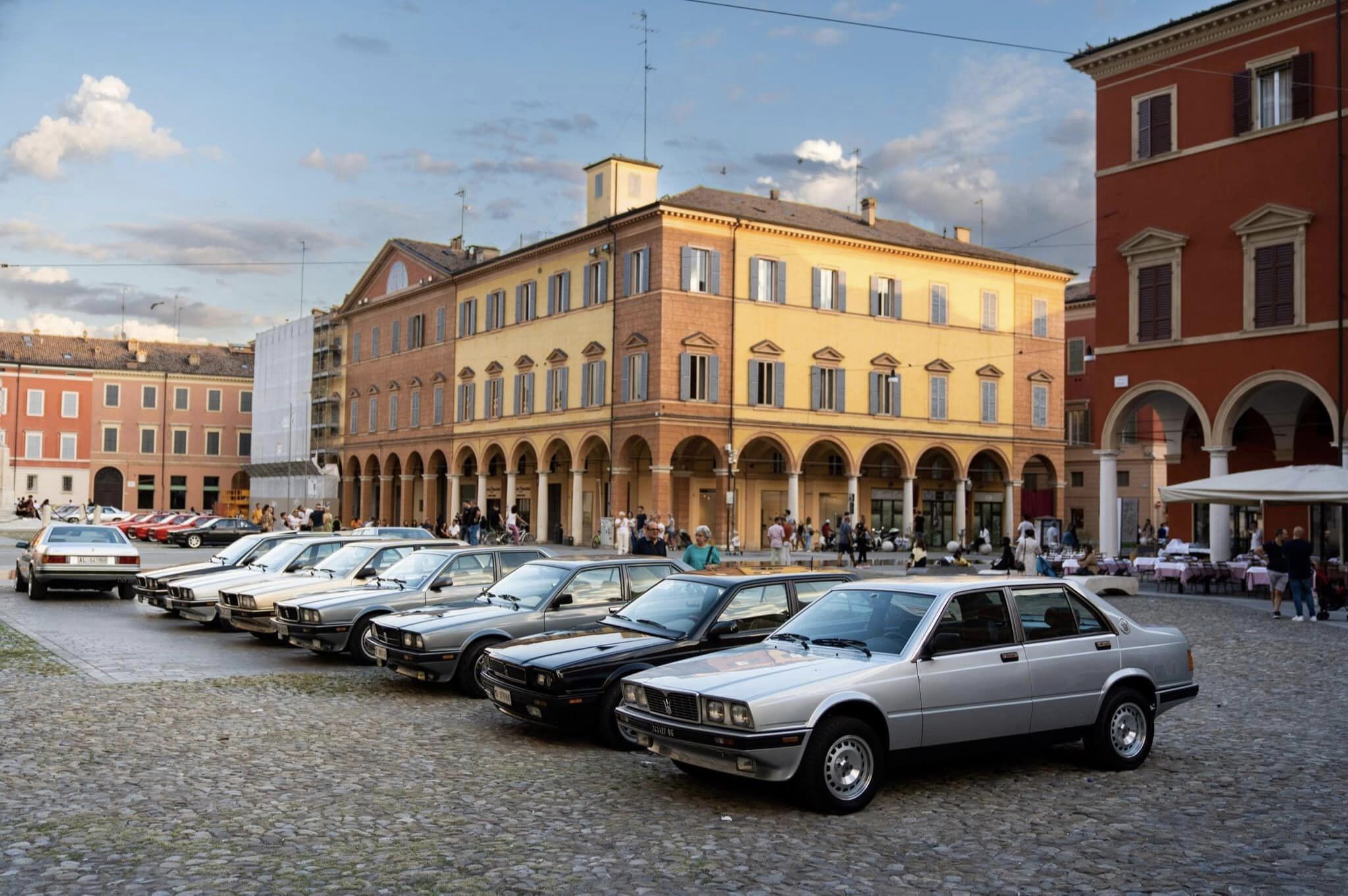 Mario La Sala et Fratelli Campana ont publié sur Facebook des photos extraordinaires des 40 ans de la Biturbo Piazza Roma à Modène devant le palais ducal :