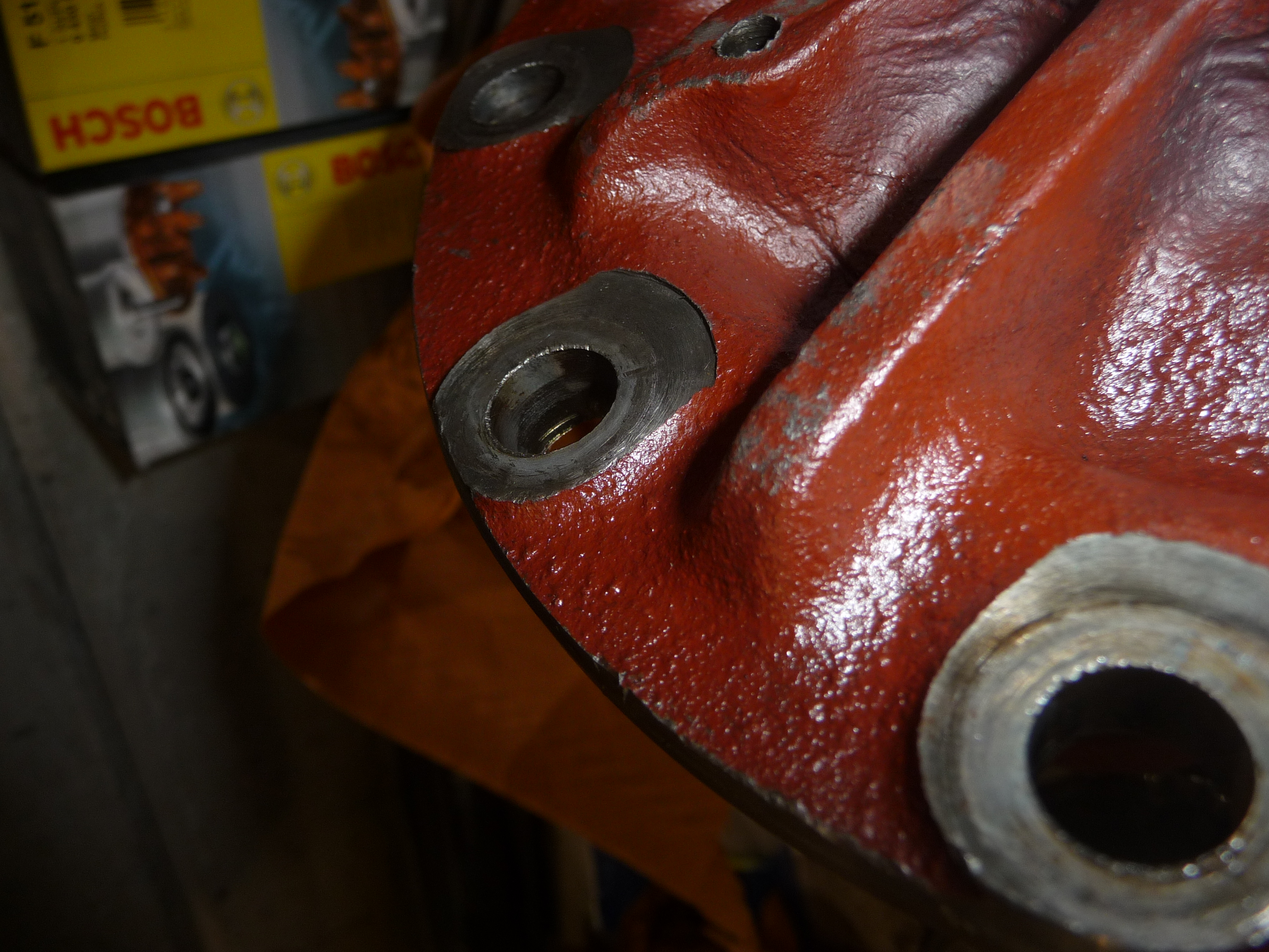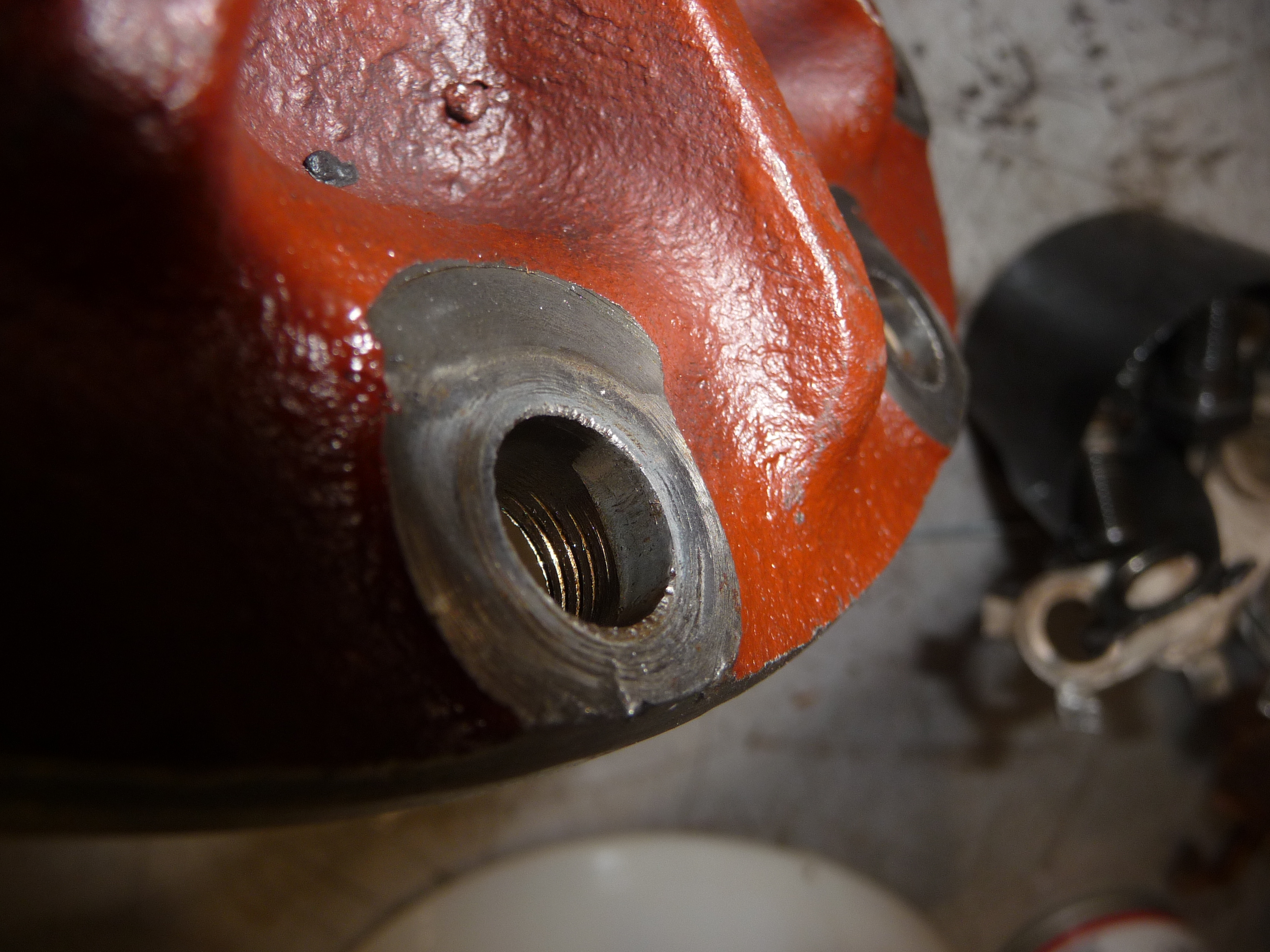 Une photo intéressante du disque sur laquelle on voit bien le matage latéral dans l'alésage, et même le marquage des filets de la vis!