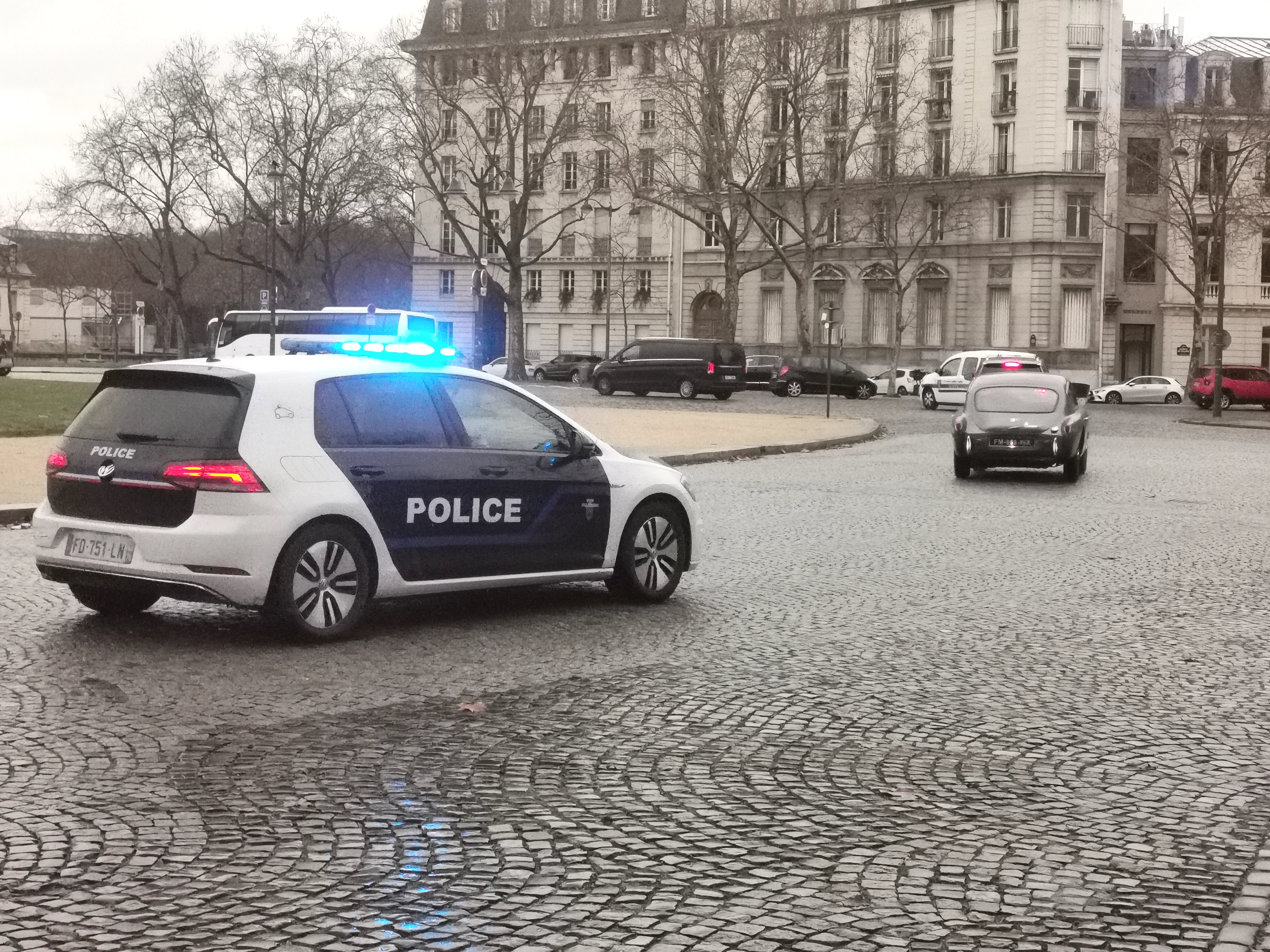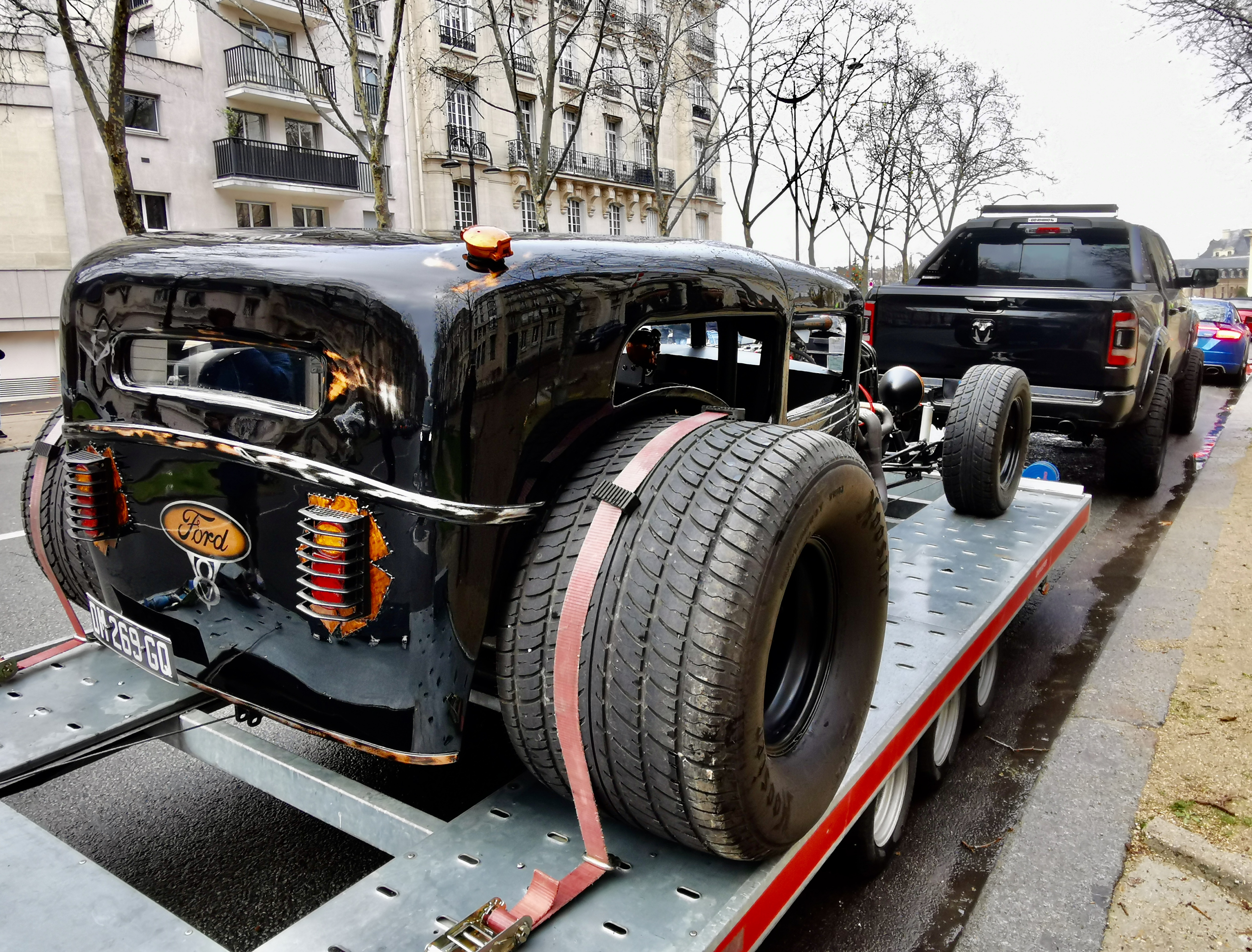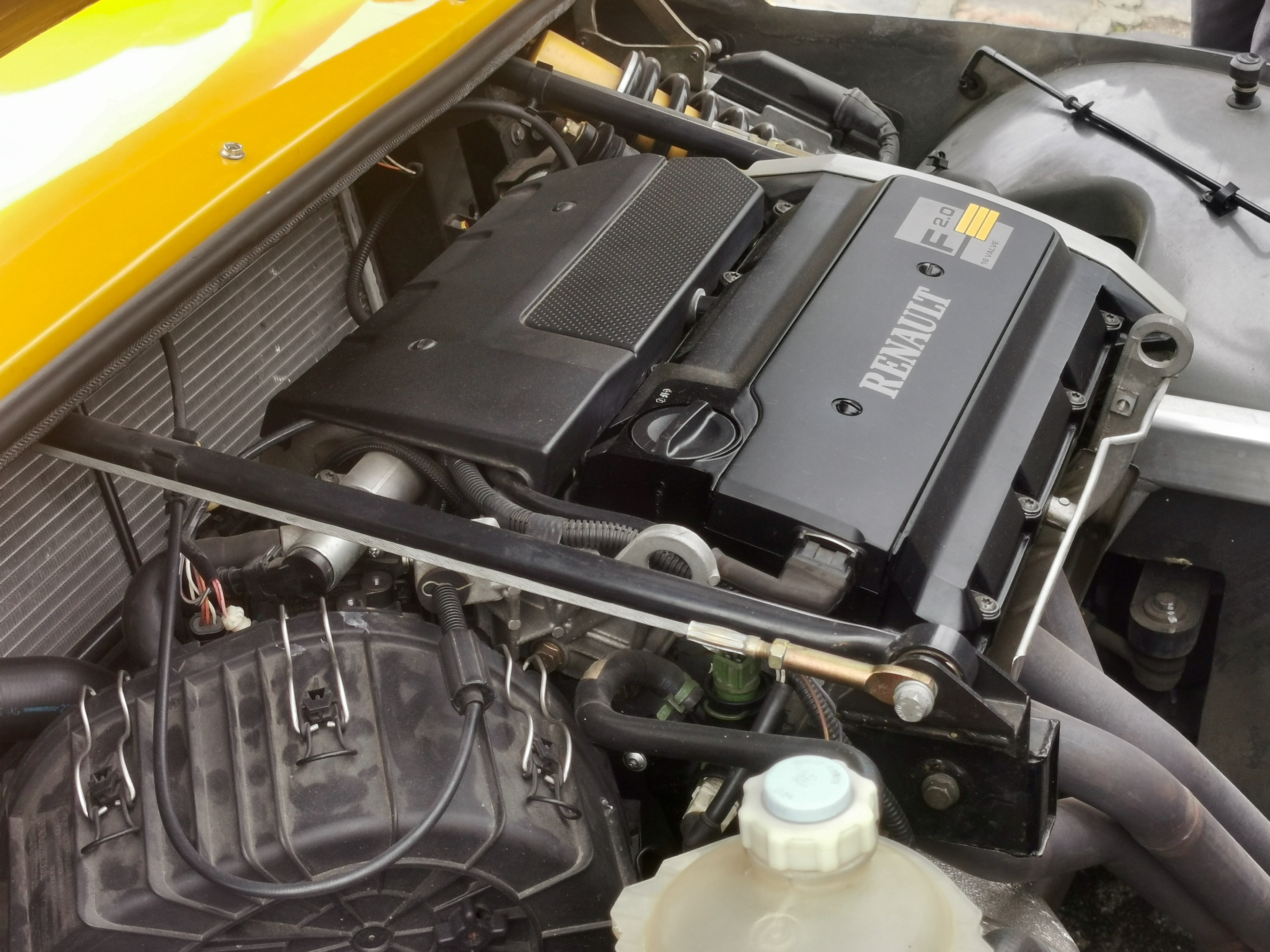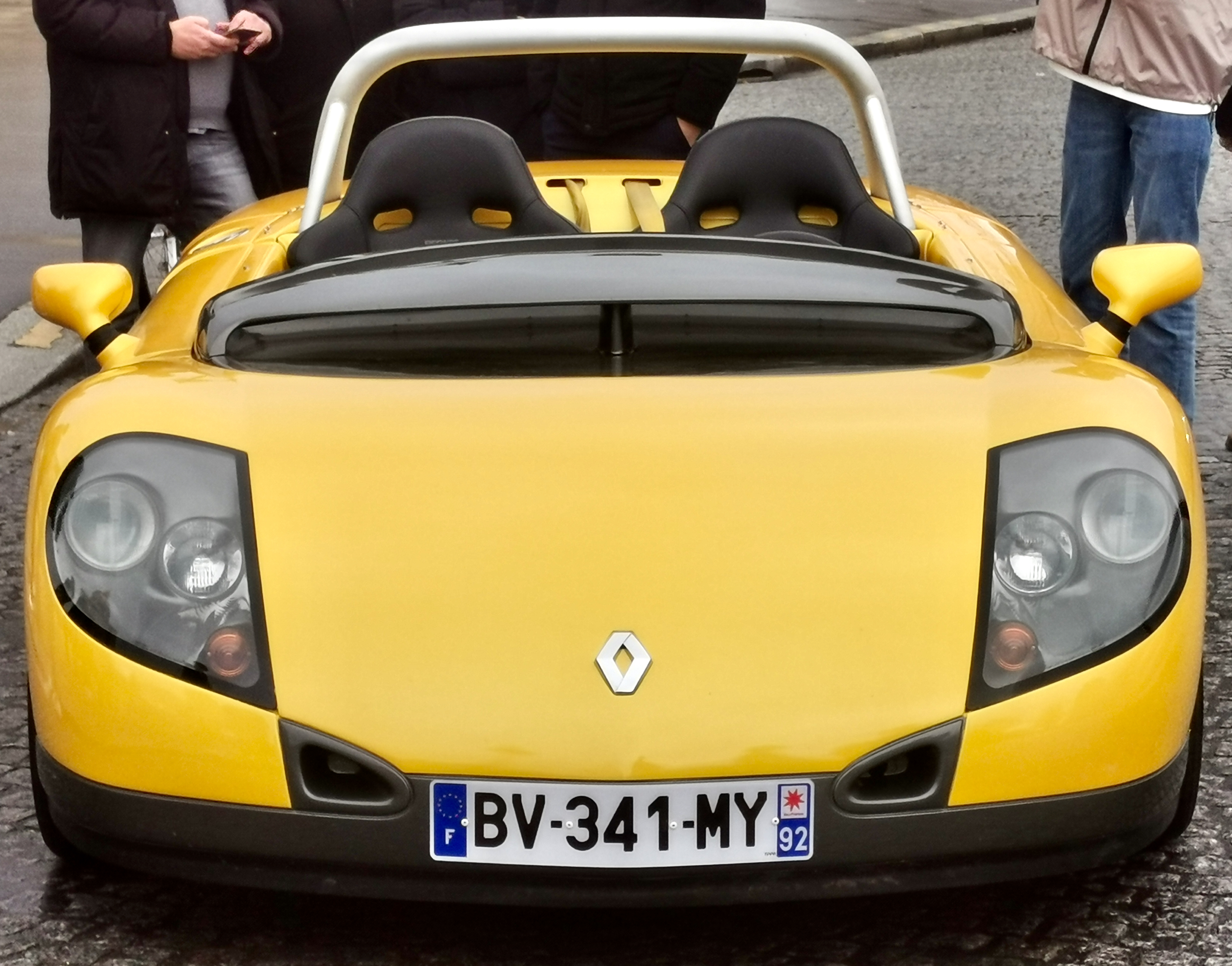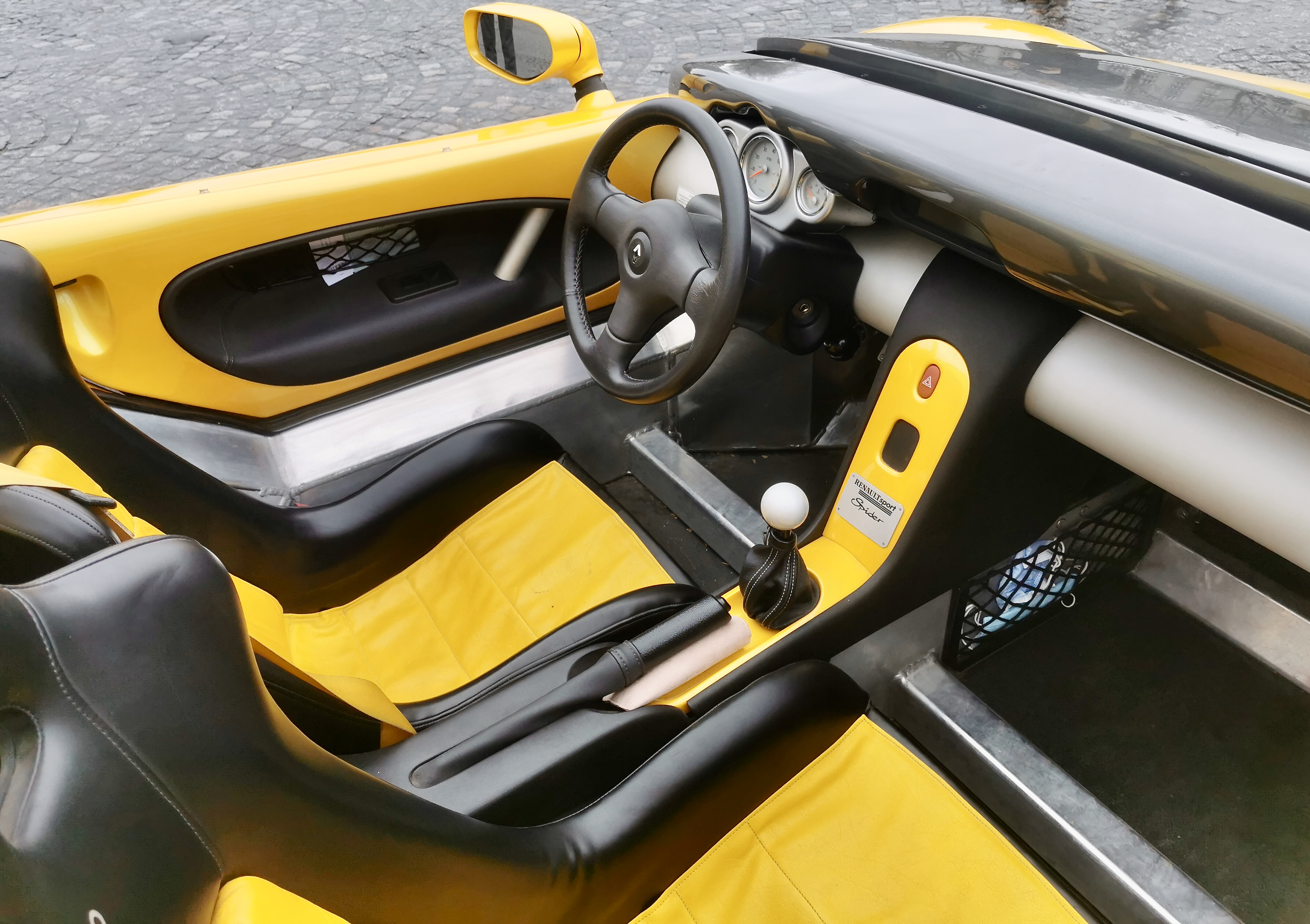 On voit bien le coffre déjà plein à gauche des pieds du passager....