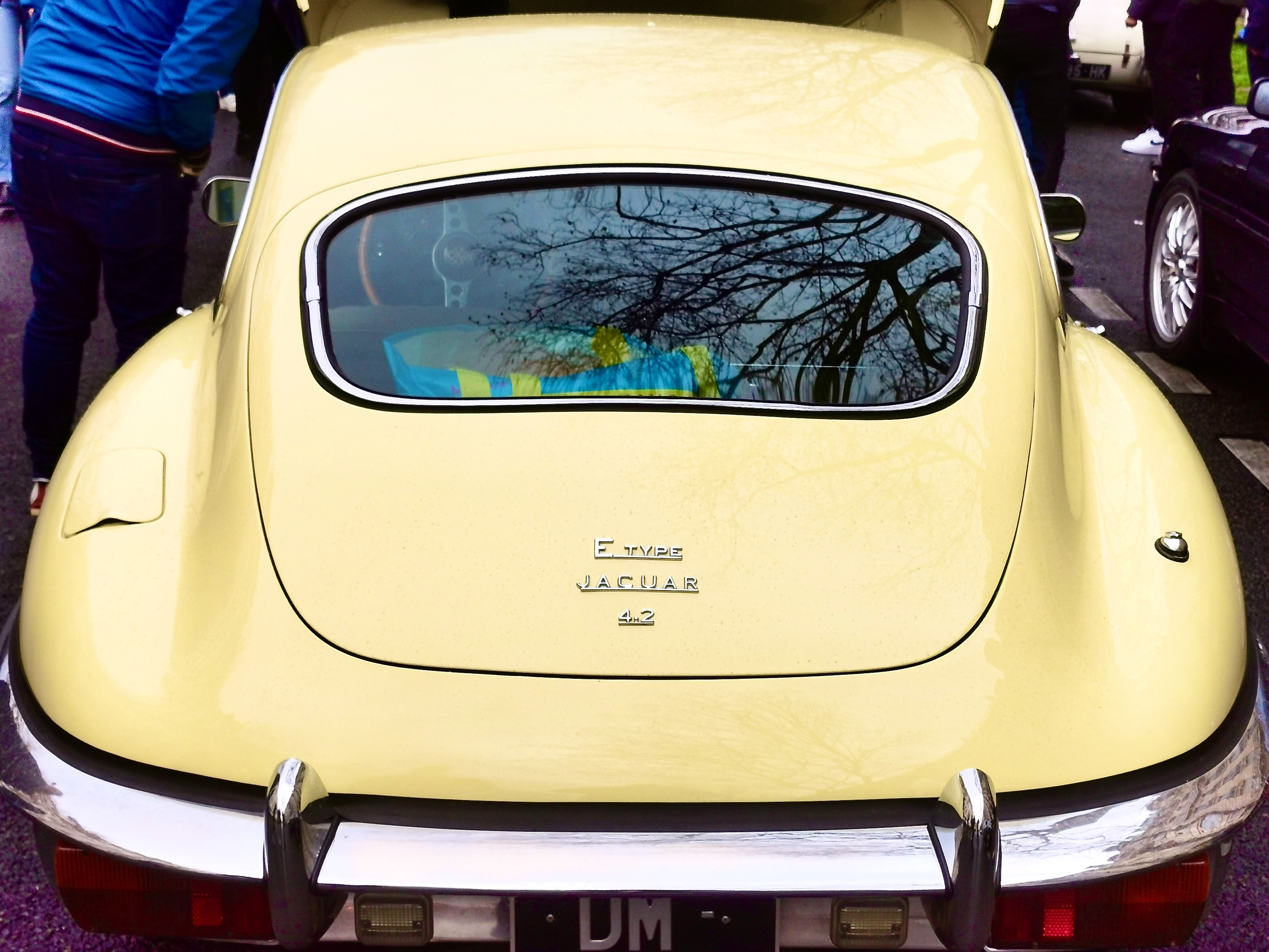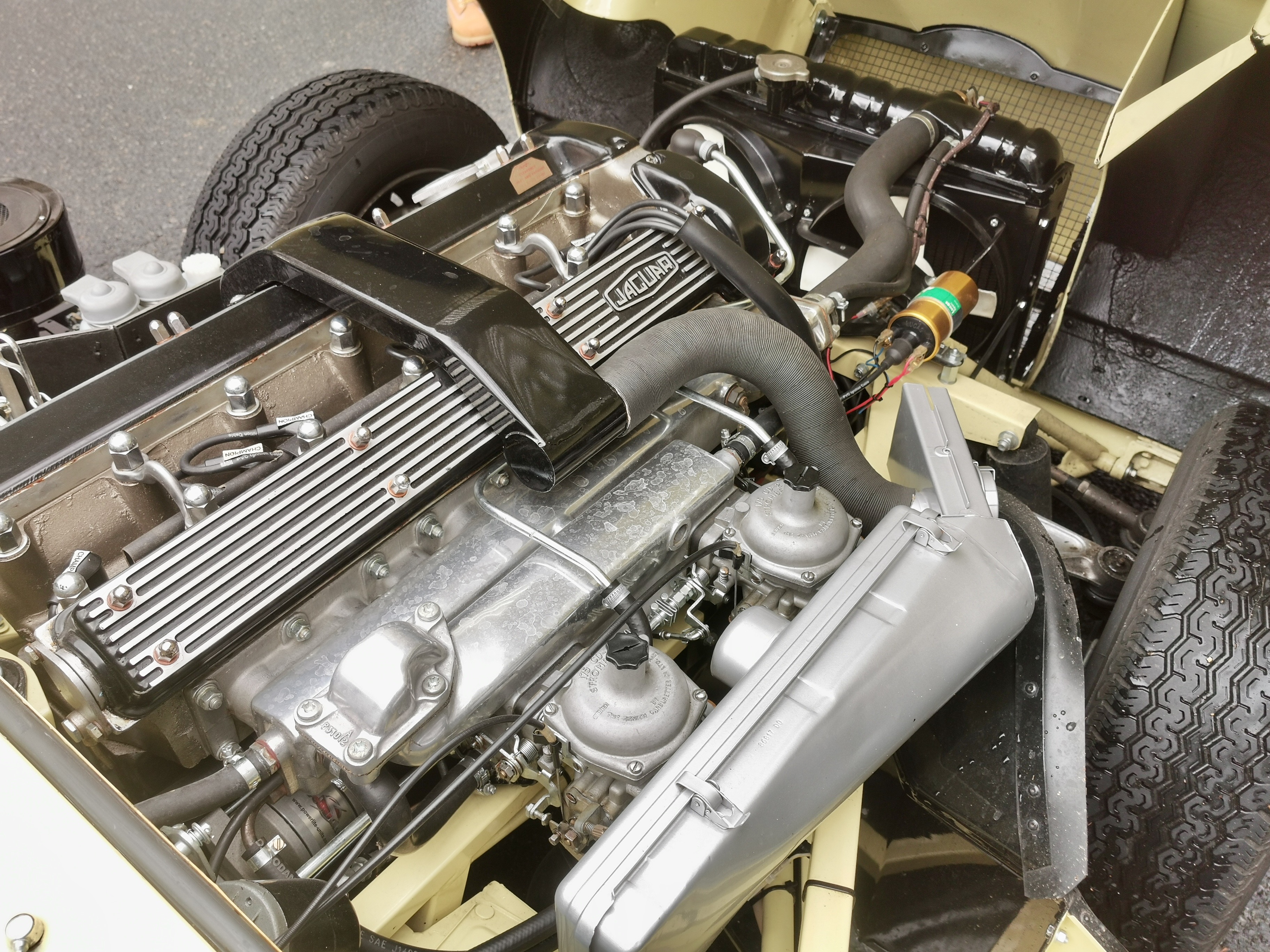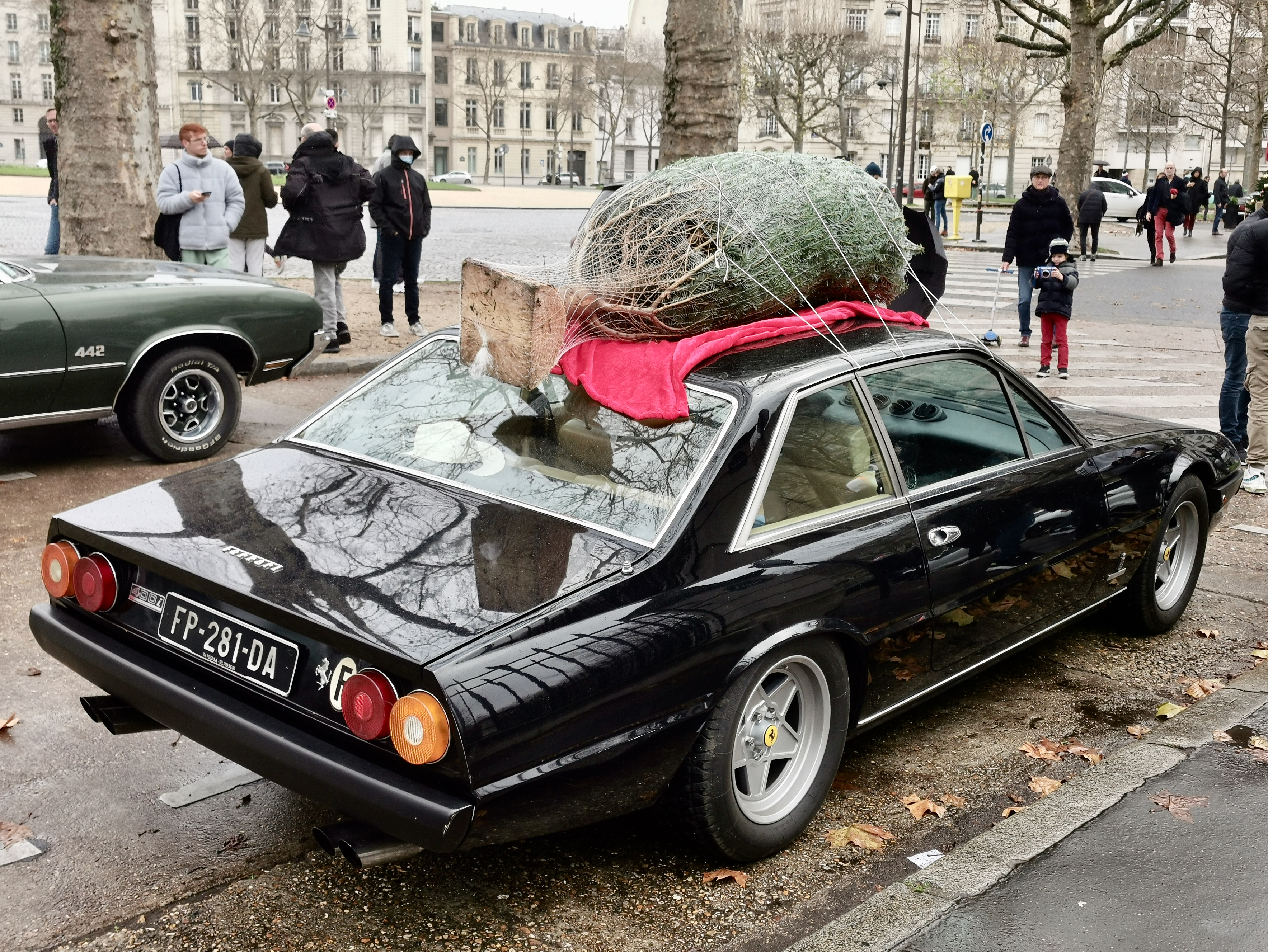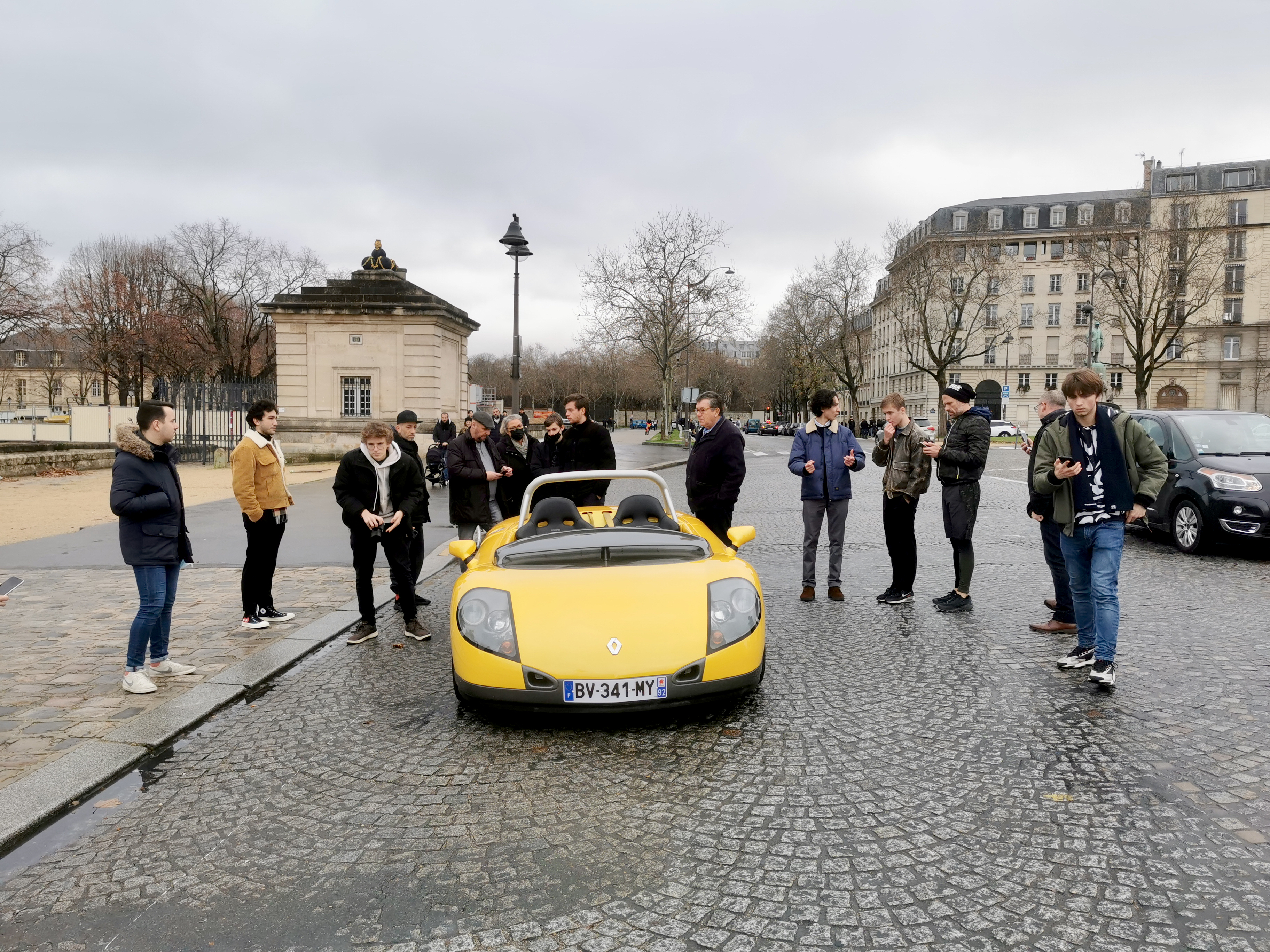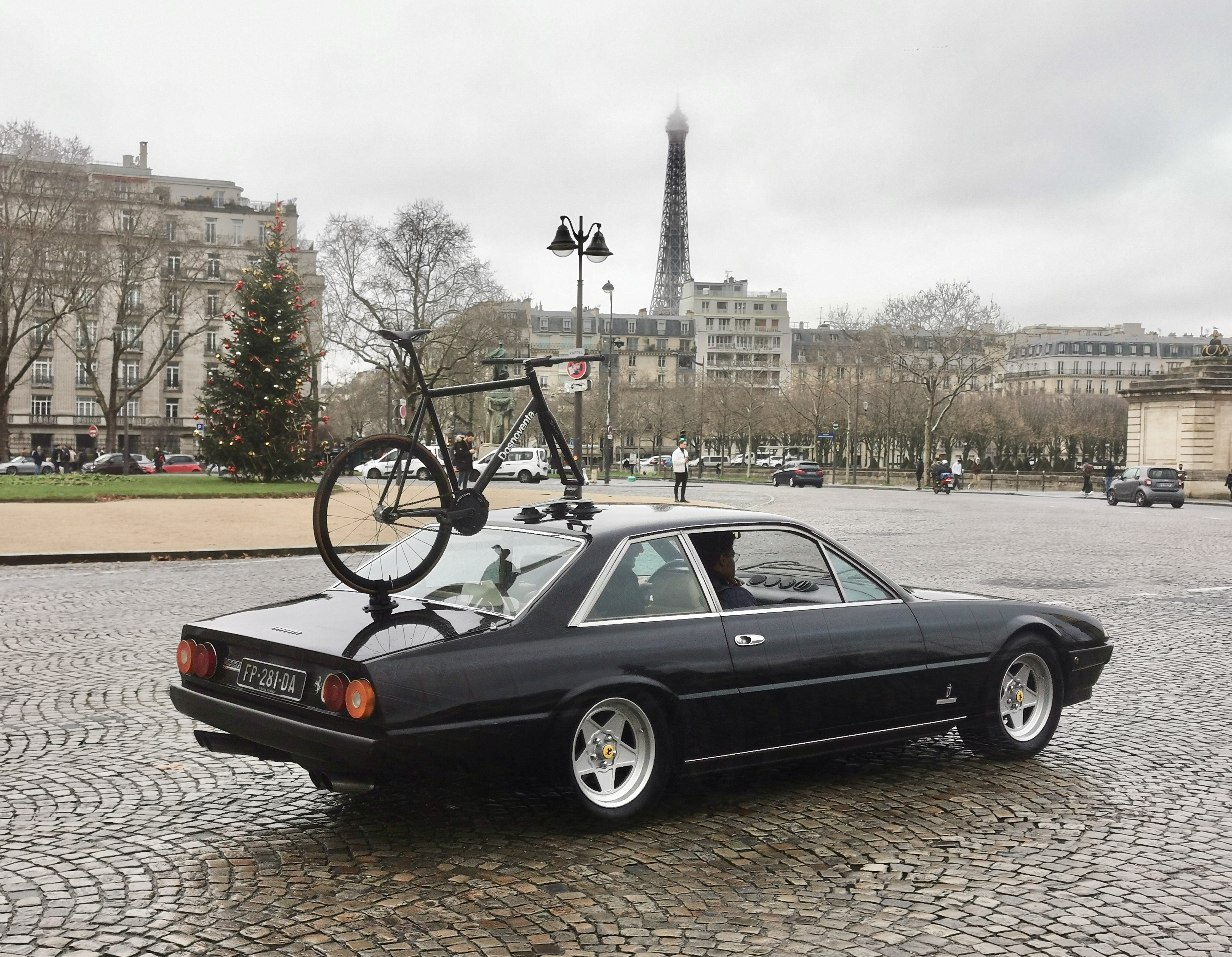 On voit bien le coffre déjà plein à gauche des pieds du passager....