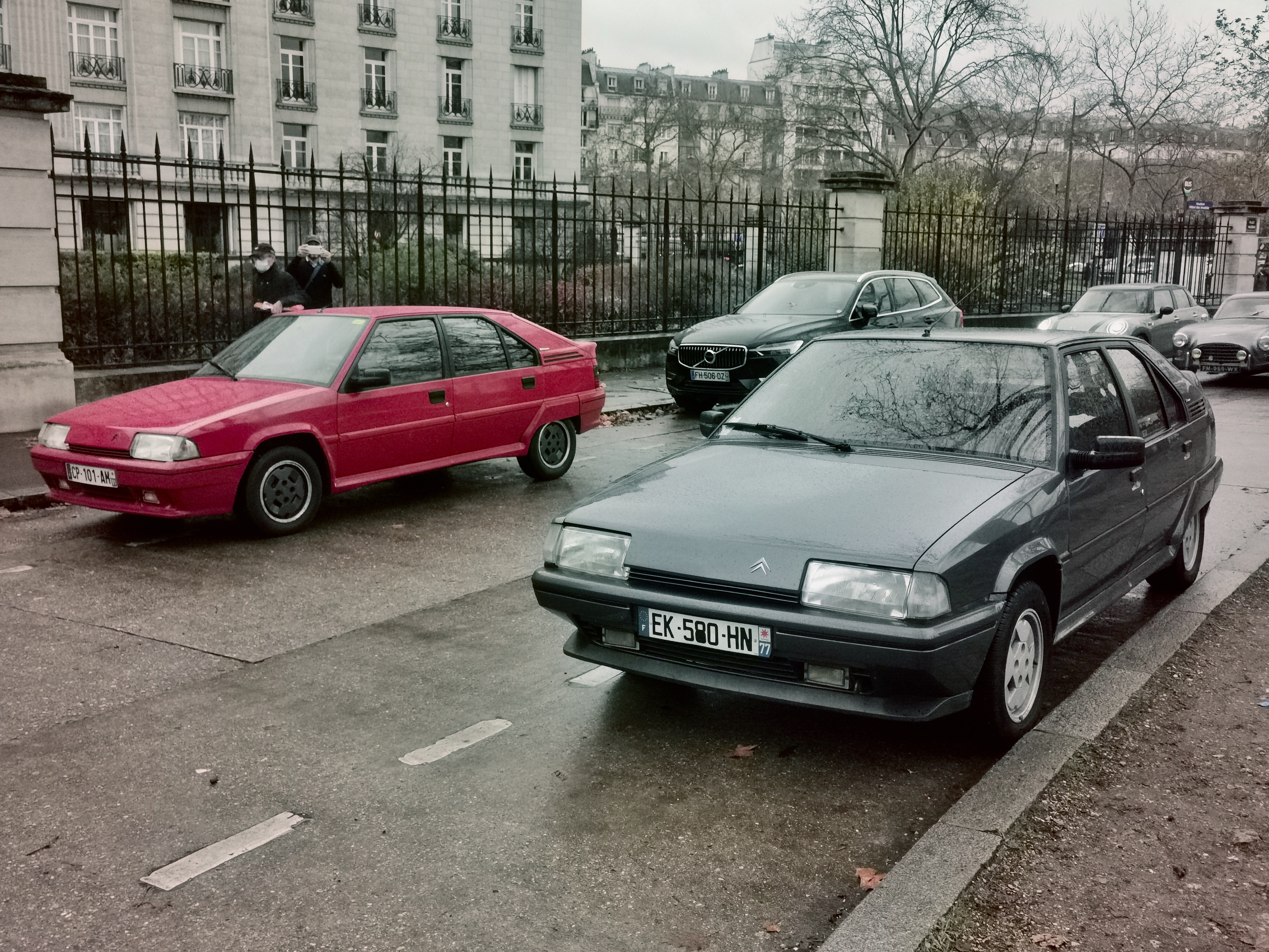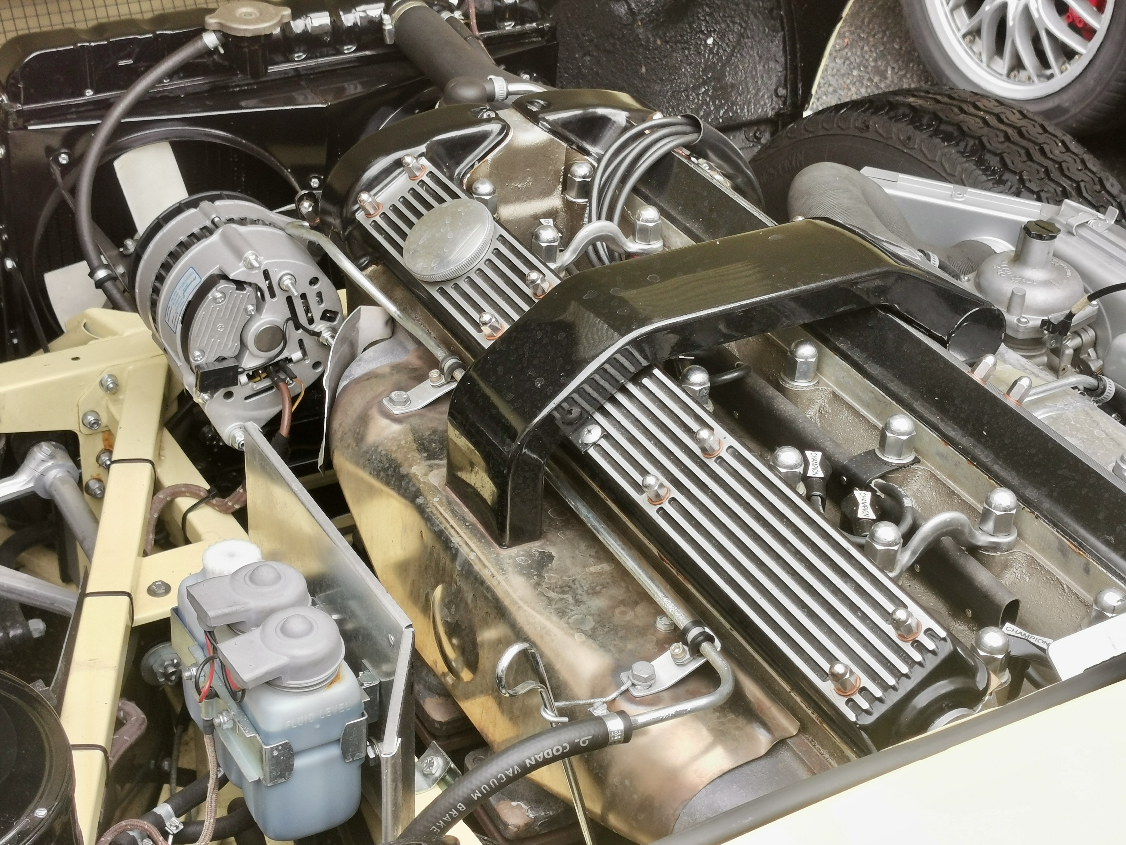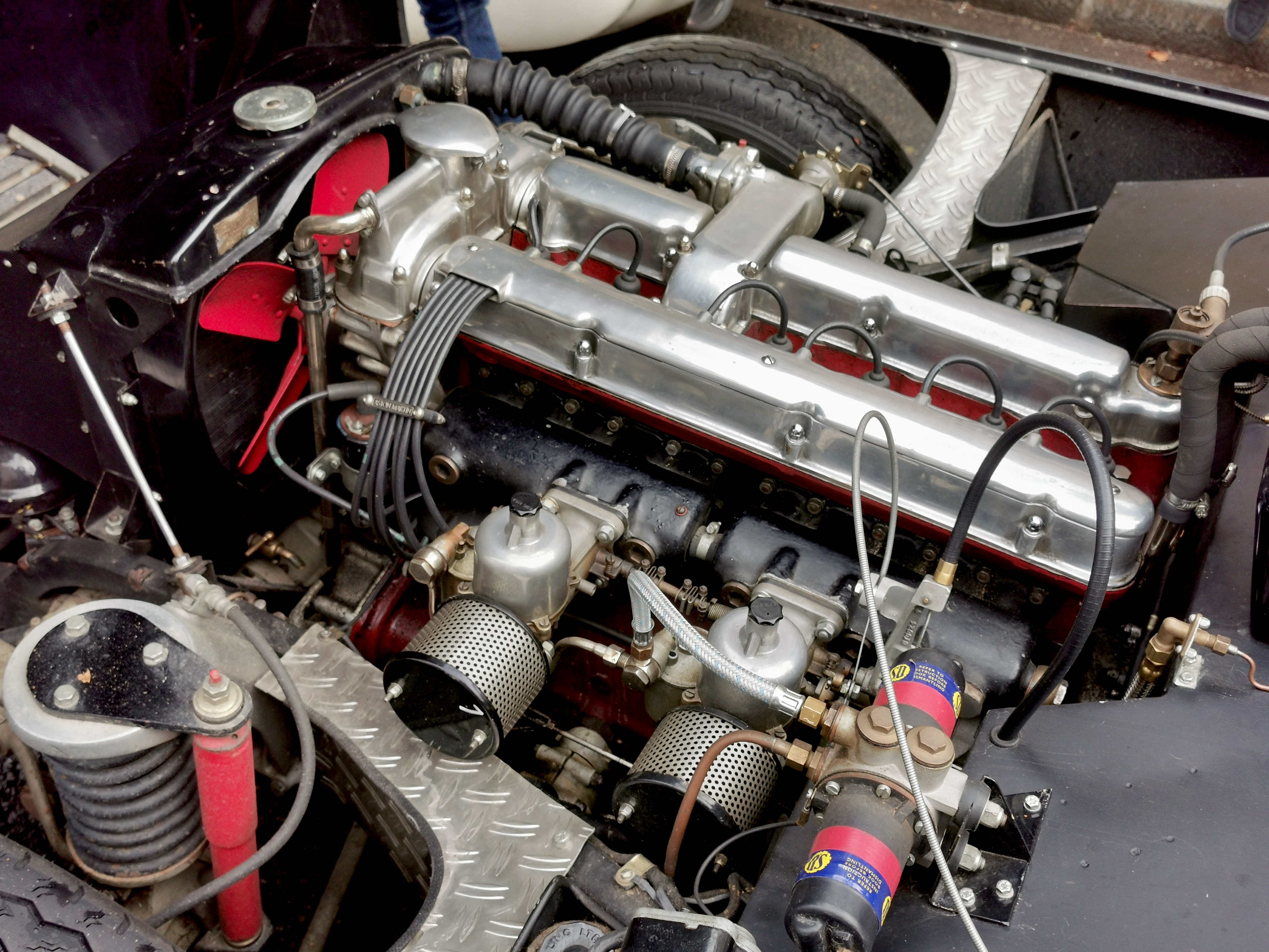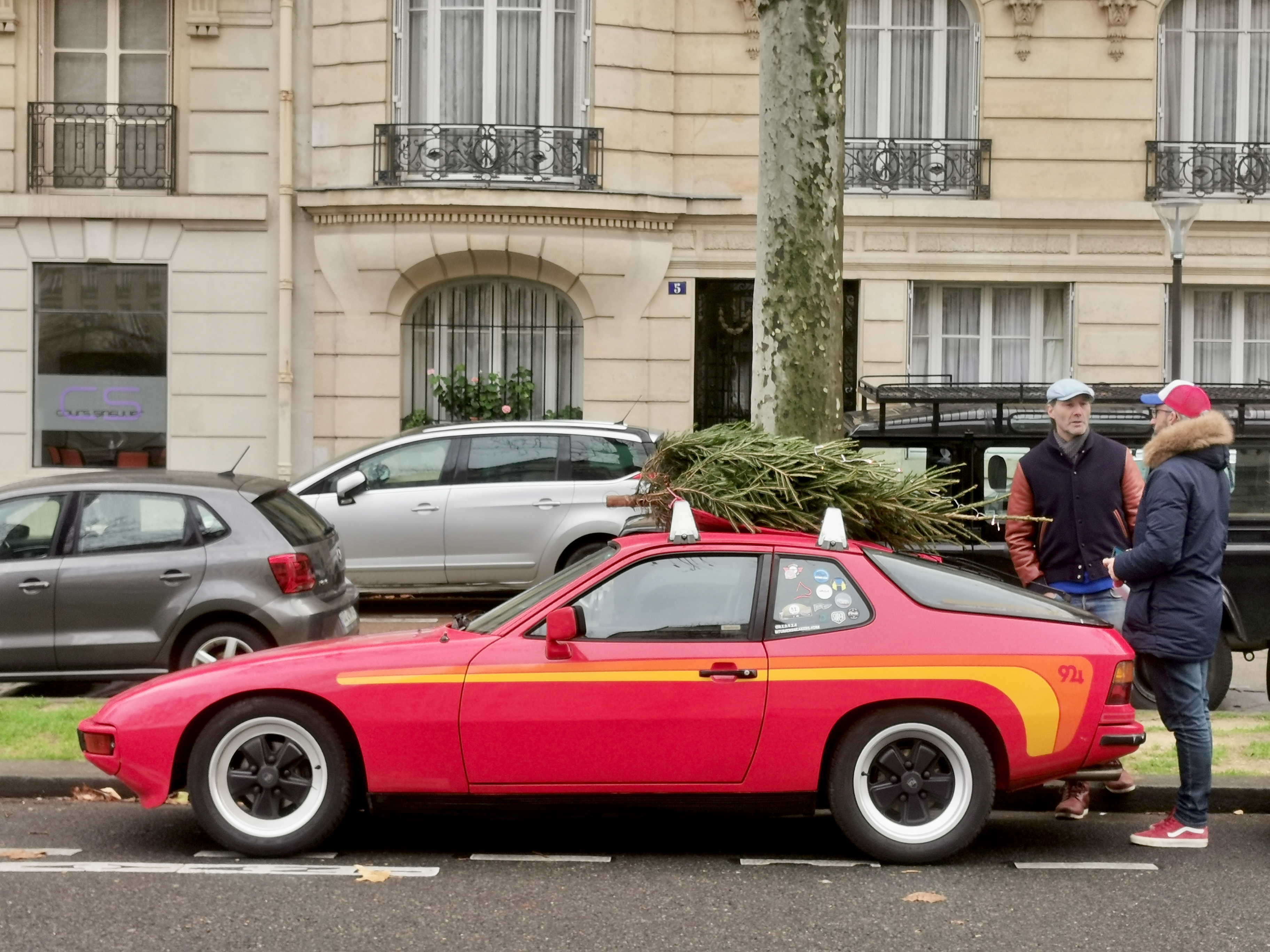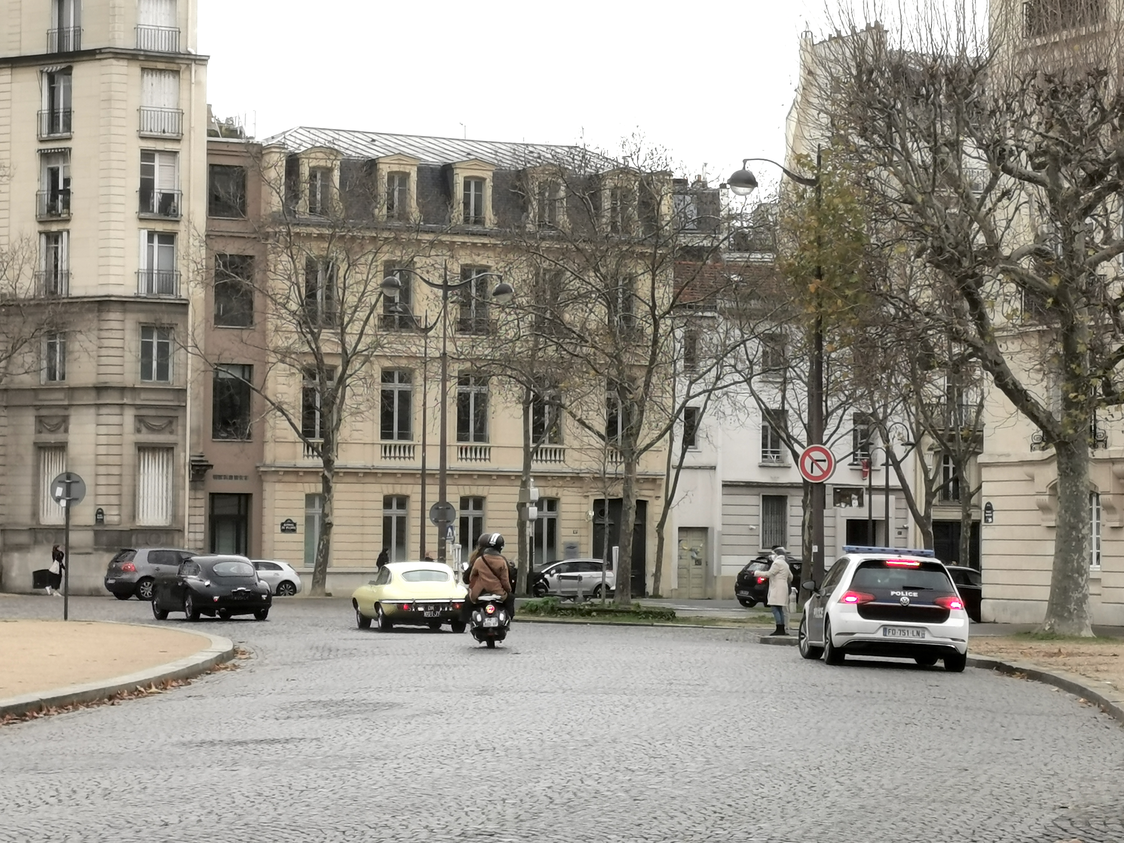 On voit bien le coffre déjà plein à gauche des pieds du passager....