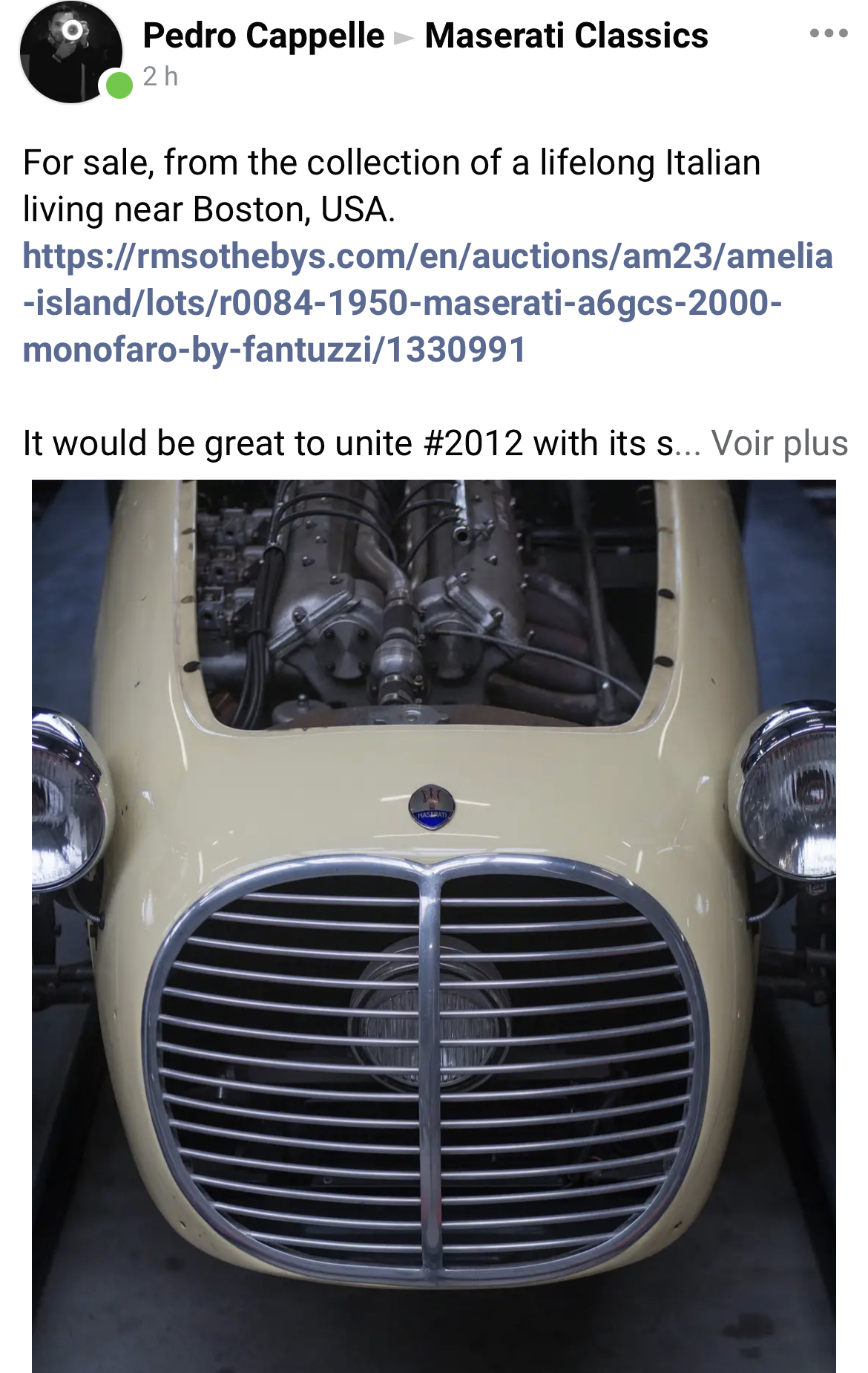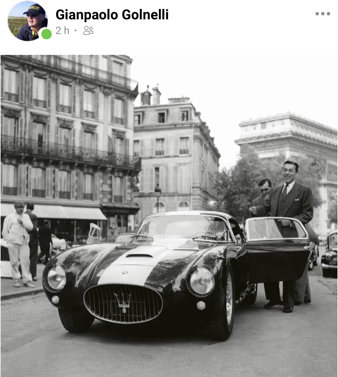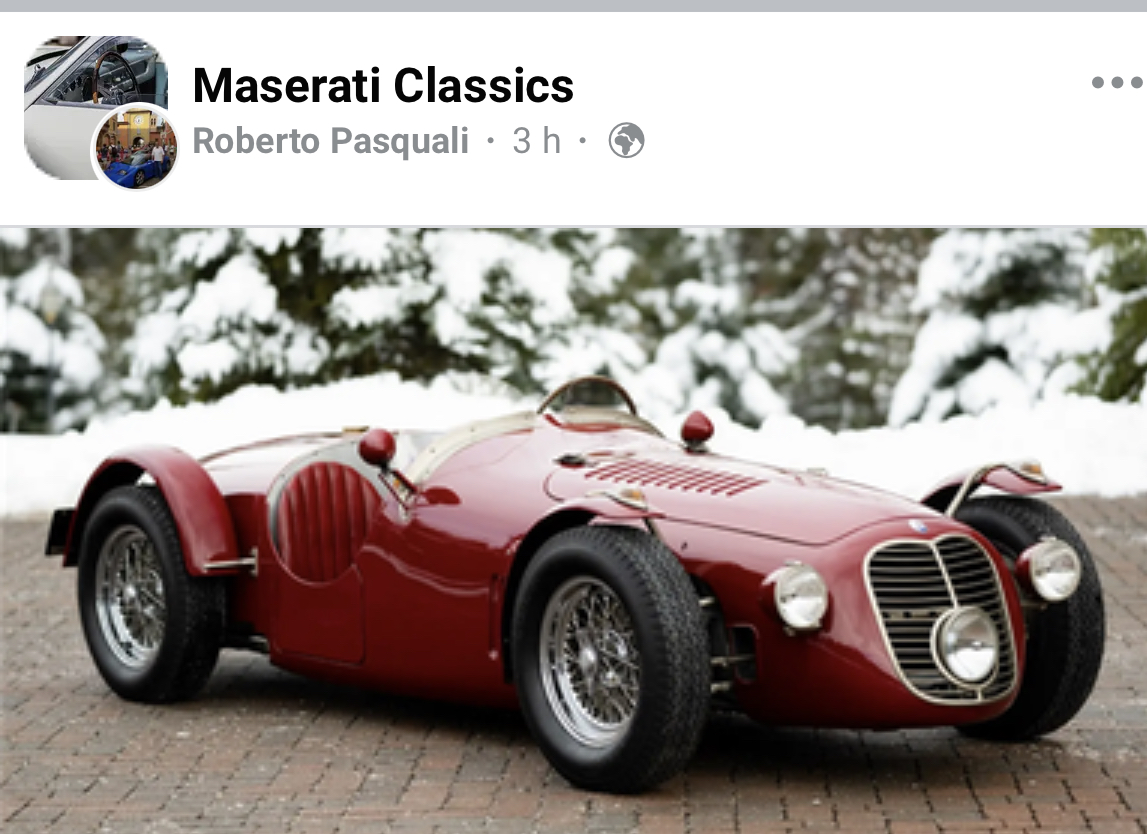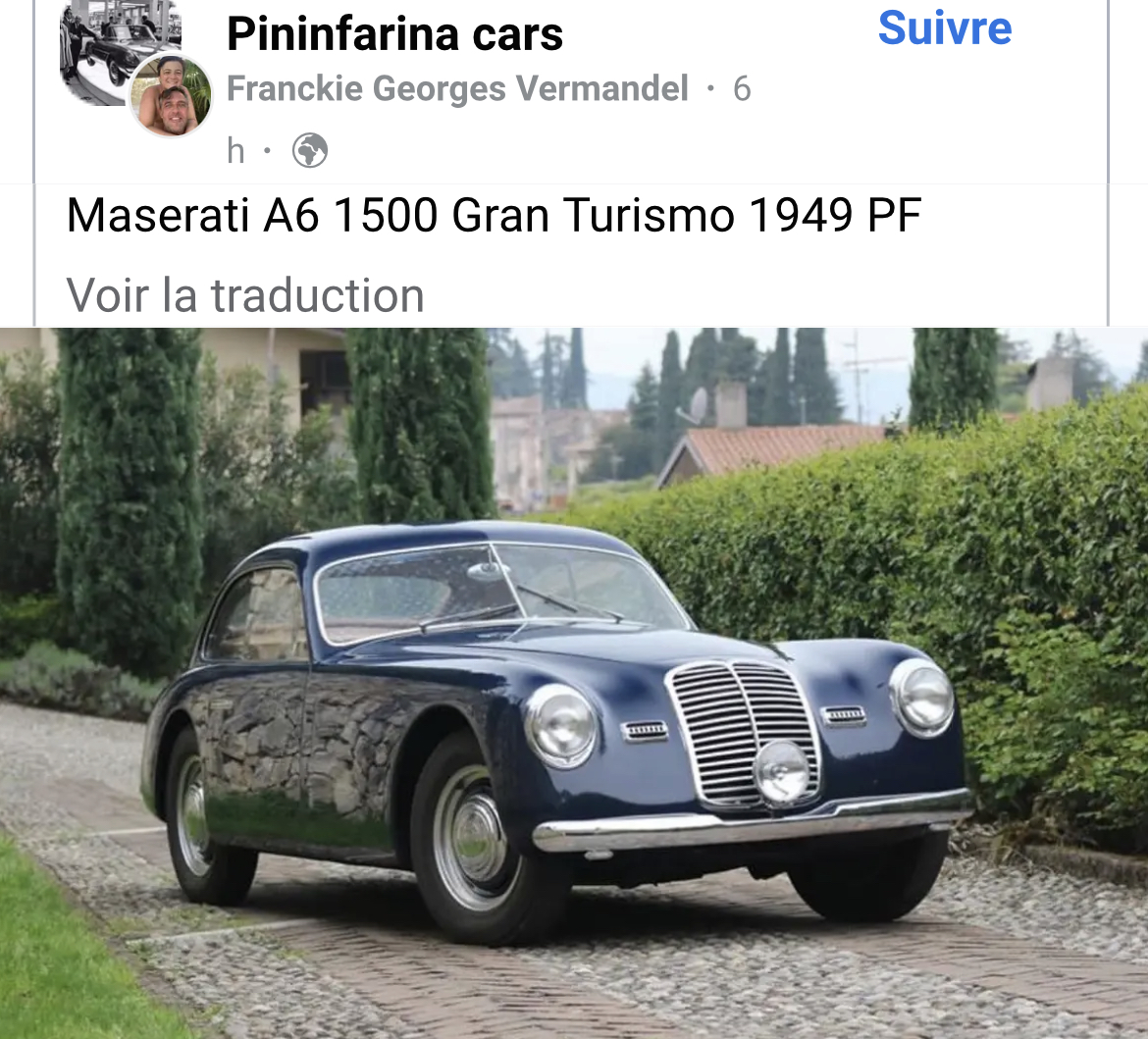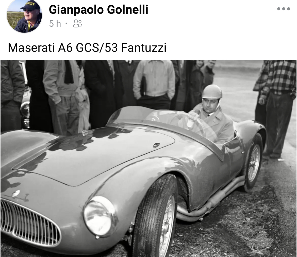 Ciao Froggie, c’est vrai que l’A6GCS/53 spyder Fantuzzi était parfaite pour les Mille Miglia quand il ne pleuvait pas, mais ce fut le déluge en 1953 ce qui valut à Mimmo Dei, concessionnaire Maserati pour le centre et le sud de l’Italie, des commandes d’A6GCS/53 à carrosserie fermée. Ainsi est née l’A6GCS/53 Berlinetta Pininfarina produite à 4 exemplaires. Voici la troisième, #2059 qui fut présentée au salon de Paris 1954. Les immeubles à l’arrière sont parisiens avec l’Arc de Trionphe et ce peut être le colonel Simone, concessionnaire Maserati pour la France, à la portière :