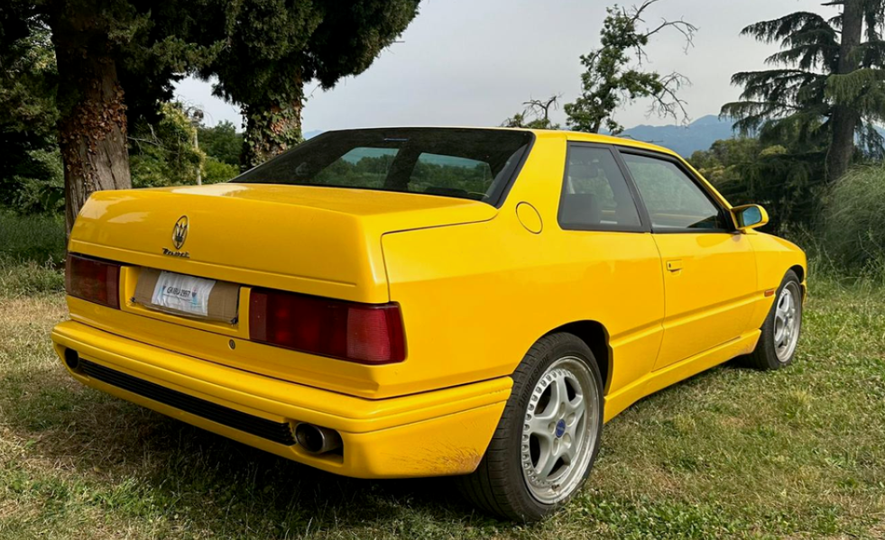Oui, celui qui la prendra fera bien de retirer l'inscription Maserati sous le trident. Par contre, la petite encoche after market au bas du couvercle de malle me semble aller assez bien et évoque un peu (à moitié inférieure) la Shamal :