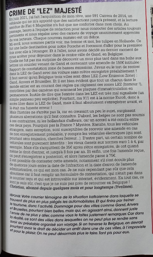 Pour revenir au sujet, donc, et s'en écarter aussitôt = je reviens de congés "automobiles" en France où je m'attendais, suite à ce que j'avais lu sur les ZFE, à ce que le problème soit l'accès aux centres-villes, comme il l'est déjà en Italie, souvent d'ailleurs pour de bonnes raisons 8-) =