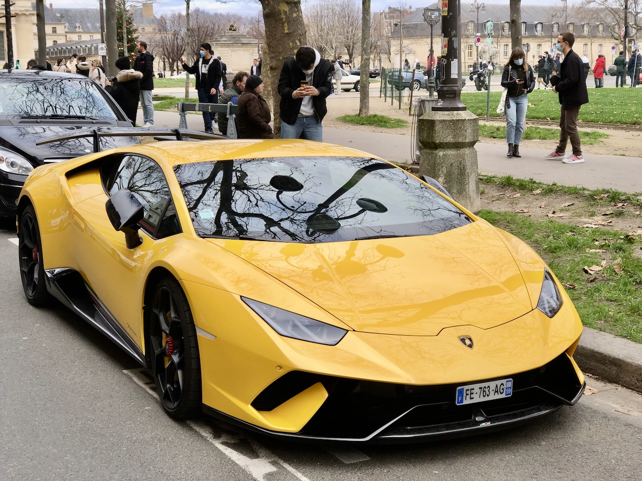 Voilà le chien qui regarde passer l'Alfa spider et une Lambo