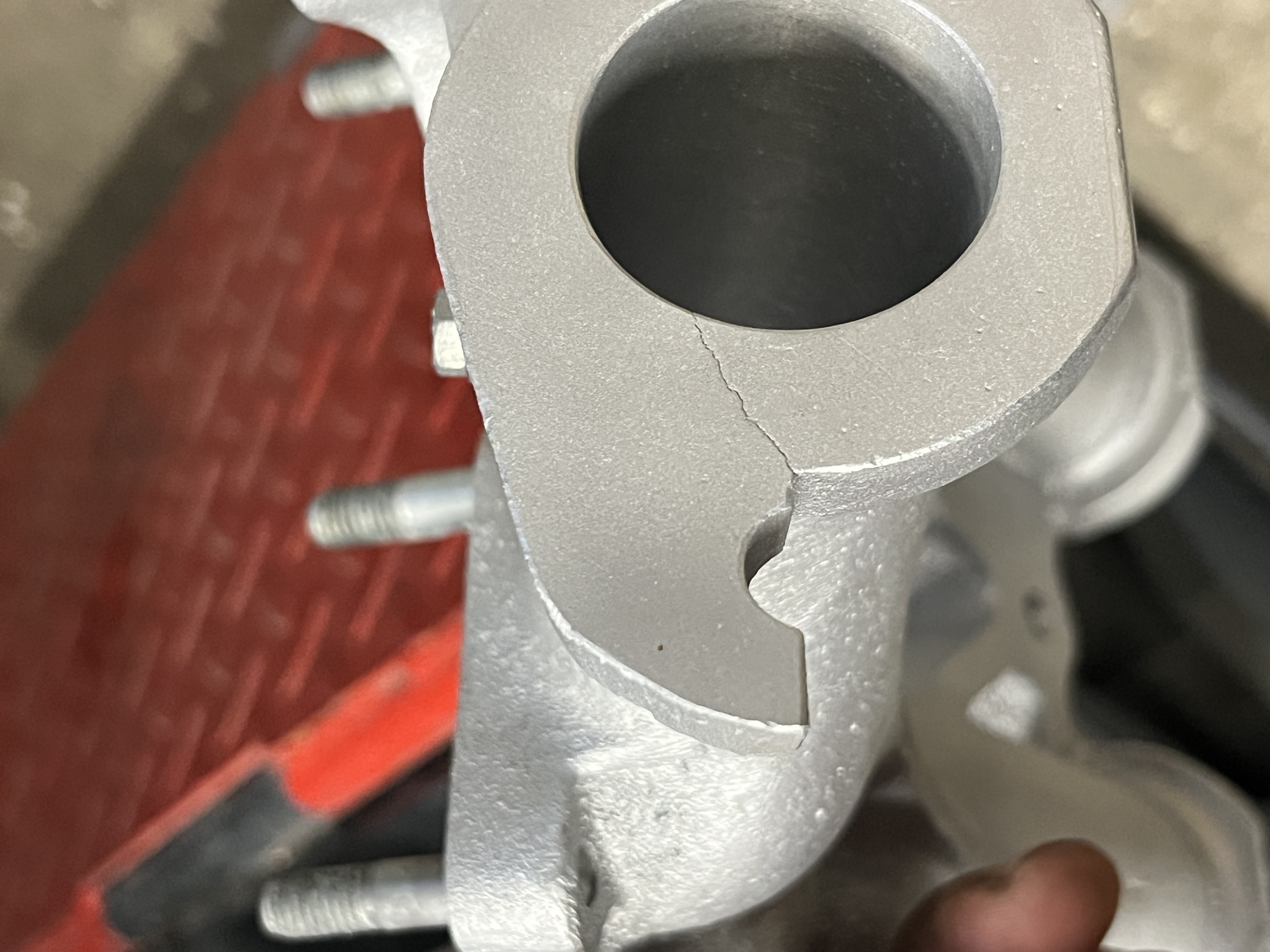 Fissuré car trop bloqué. Ça ce sert pas fort car tout ce dilate. Il y a de gros joint toriques D5 pour faire étanchéité .