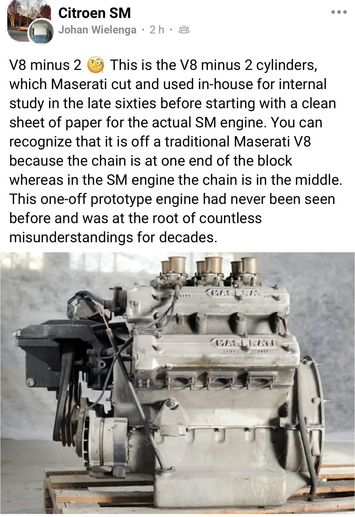 Car le V6 SM/Merak a en effet connu pas mal de problèmes au début à cause de cette conception...