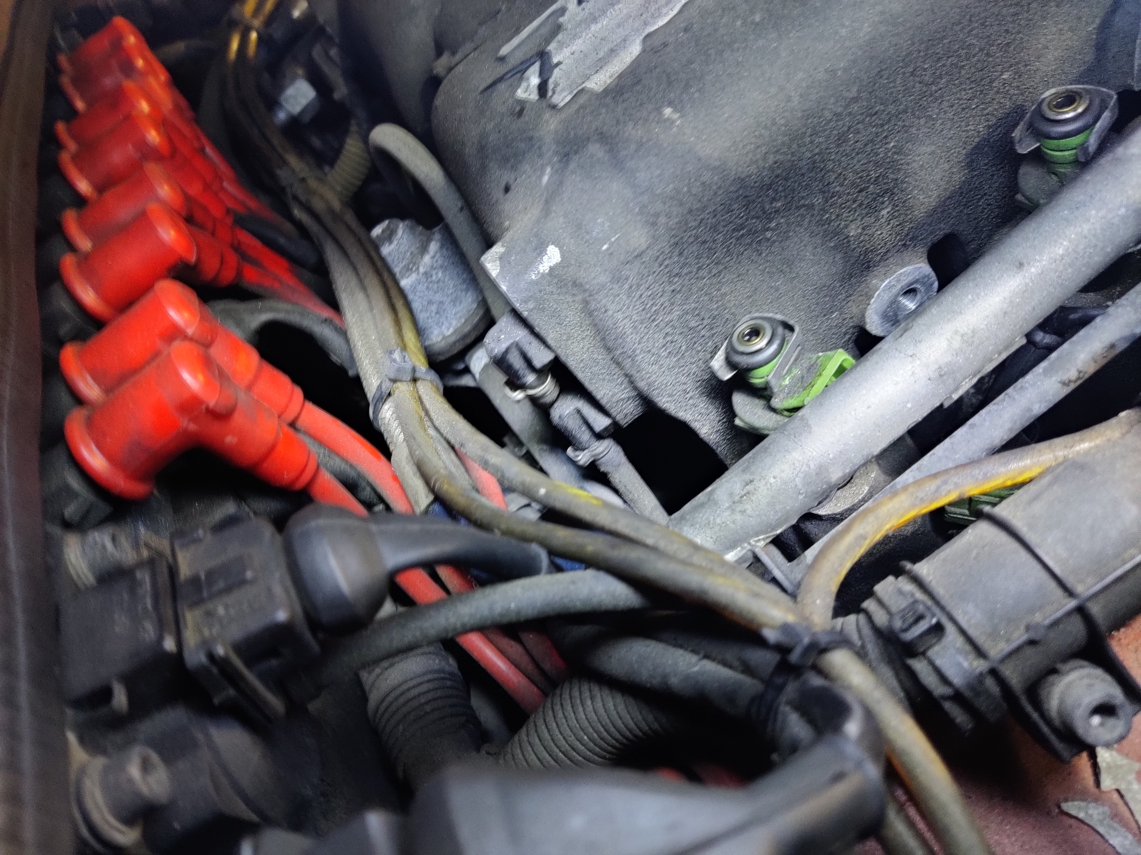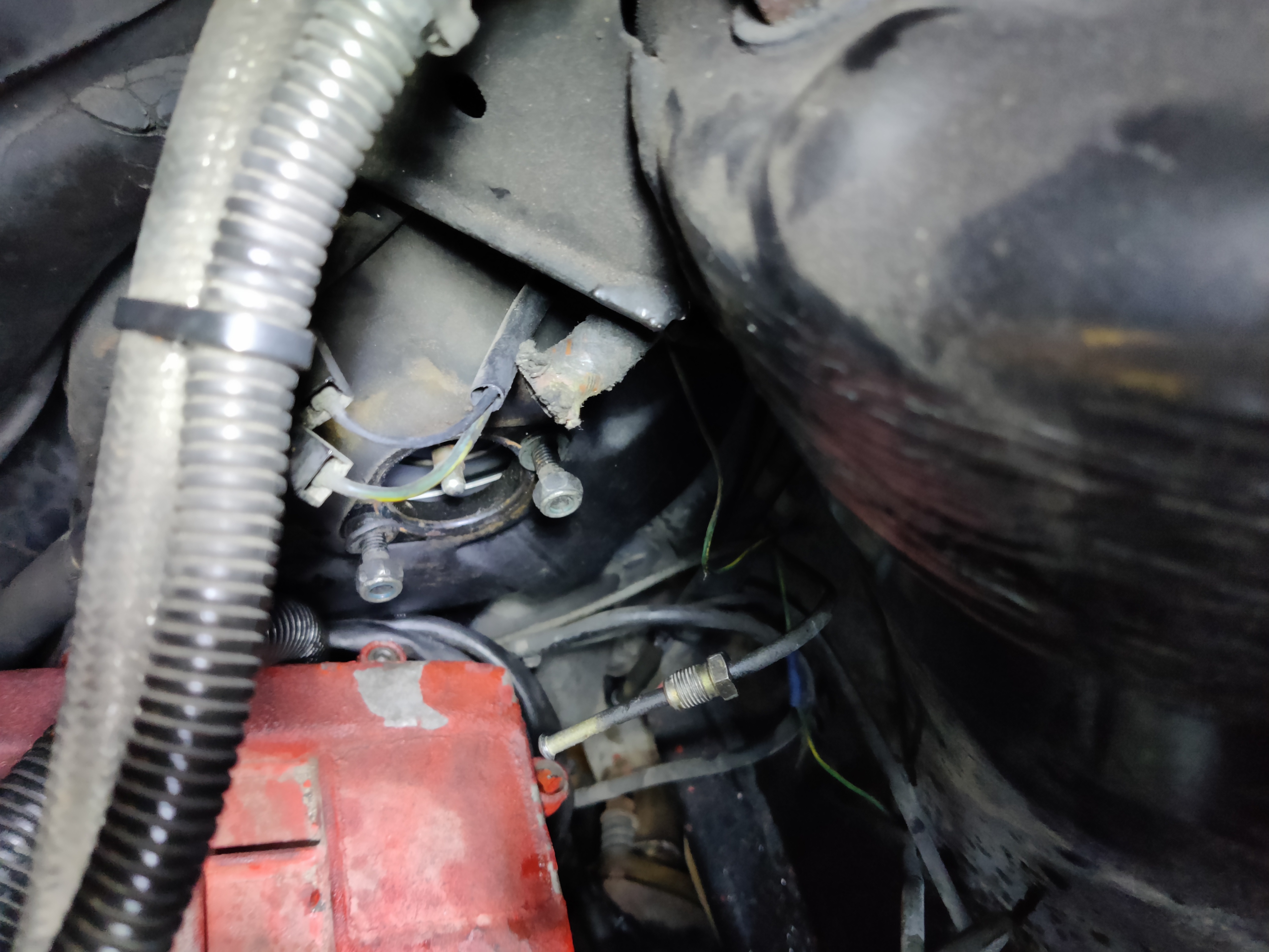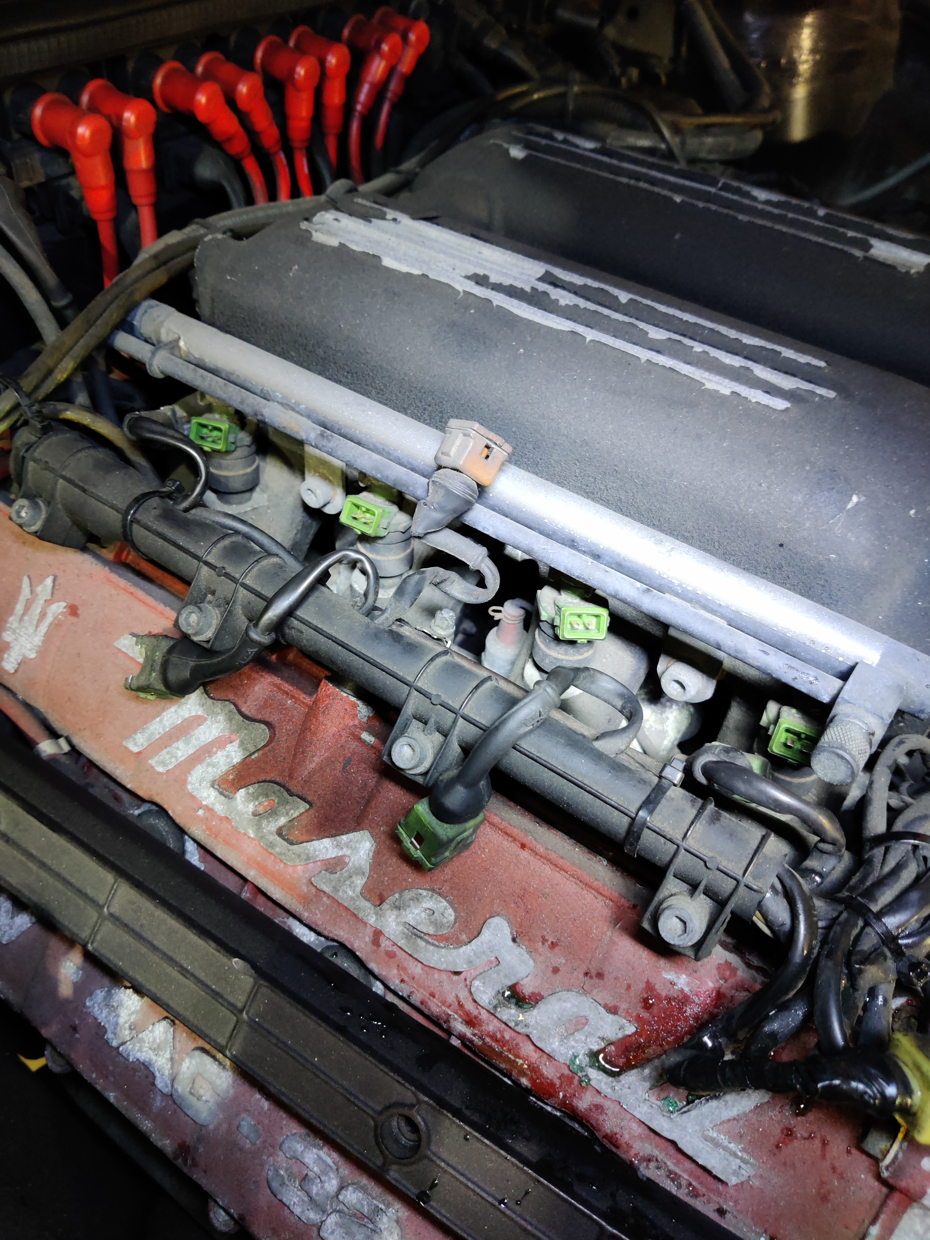 L'araignée n'est pas en superbe état, il y a du y avoir quelques fuites par là aussi. Je démonterai, et probablement que je vais recommander des durites à la bonne taille pour remplacer celle-ci qui semblent commencer à montrer leur âge.