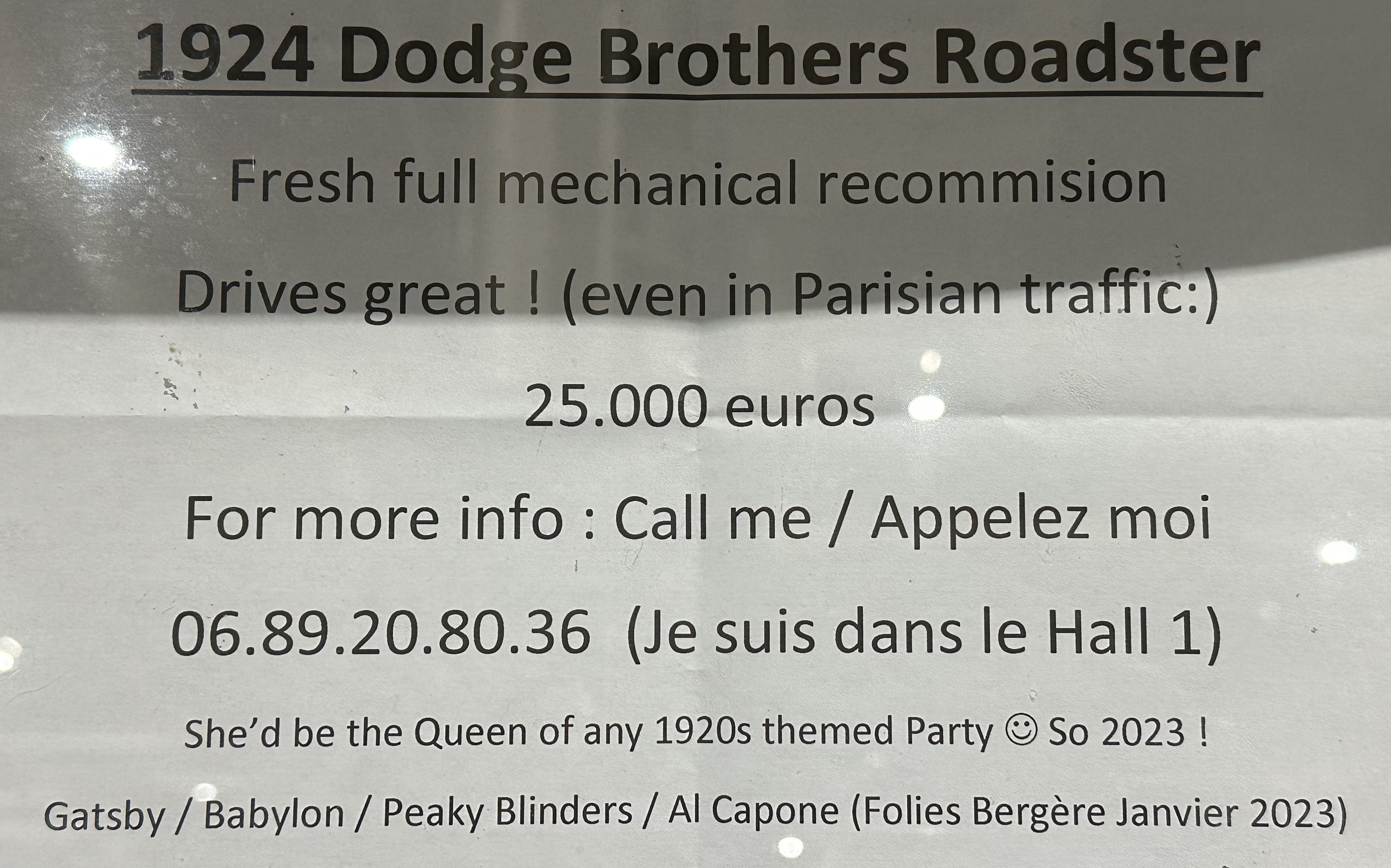 C'est une 1924 Dodge Brothers Roadster.Prix de vente 25 000€ .Je mets l'annonce au cas ou.