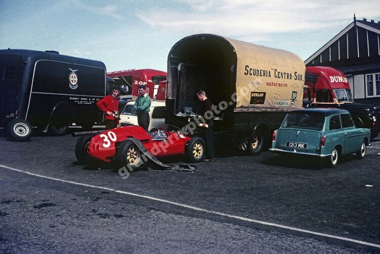 Autre écurie à transporter des Maserati, la Centro-Sud, avec un OM Leoncino déchargeant une Cooper Maserati en 1961, et un Fiat 682 =