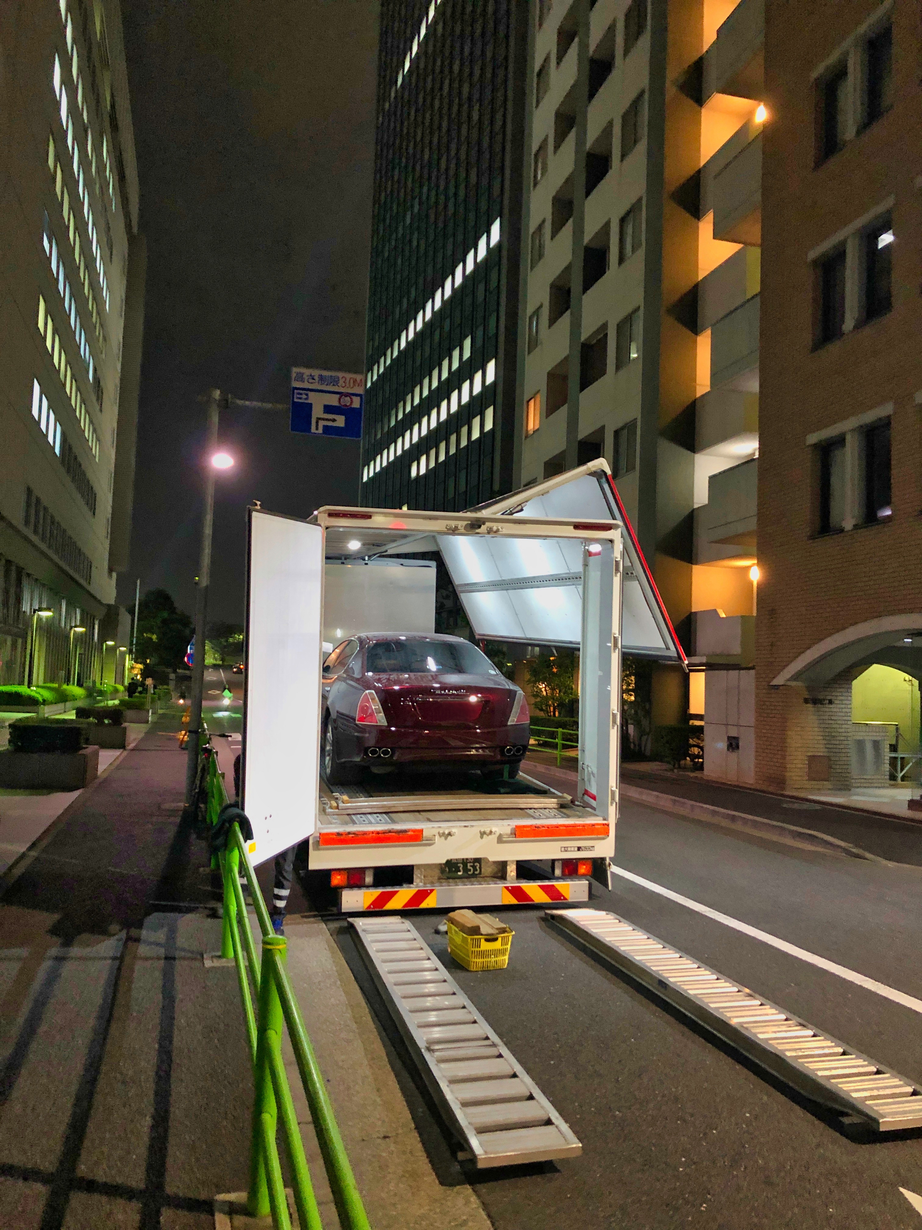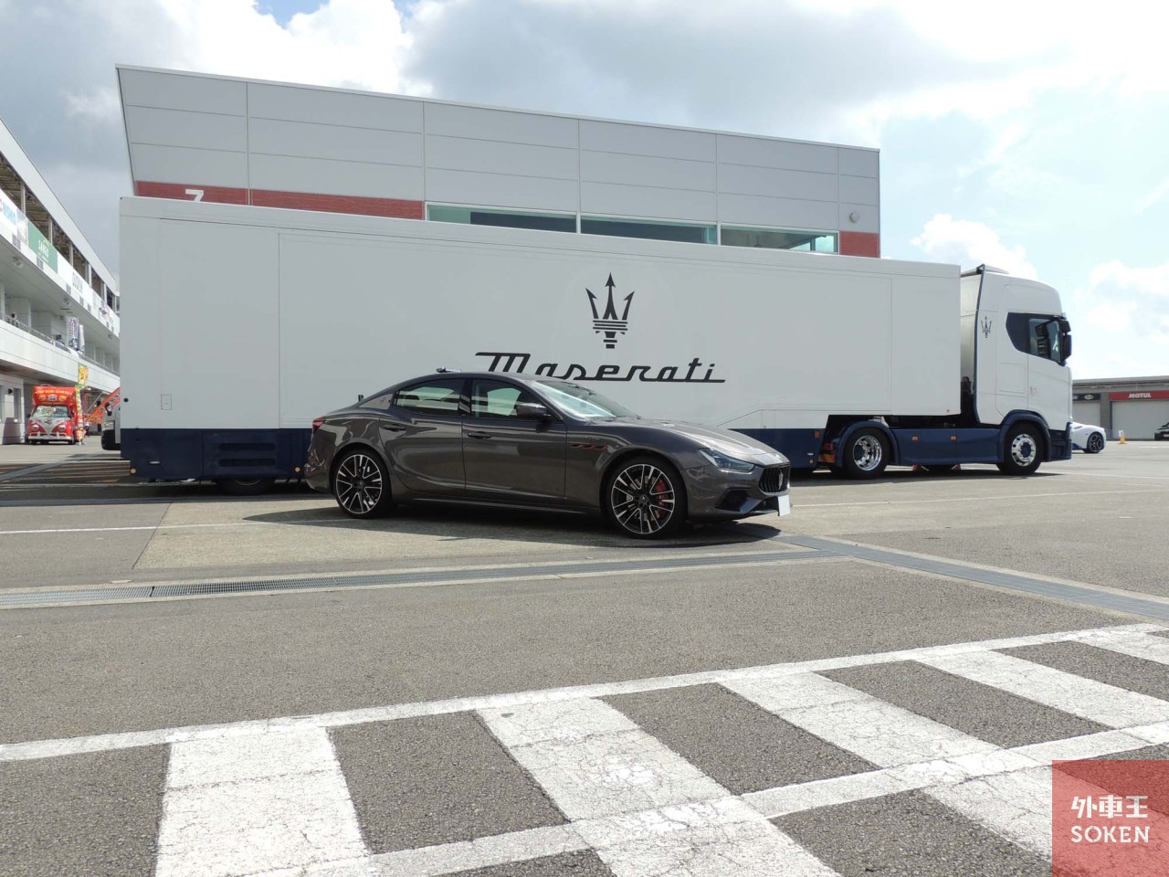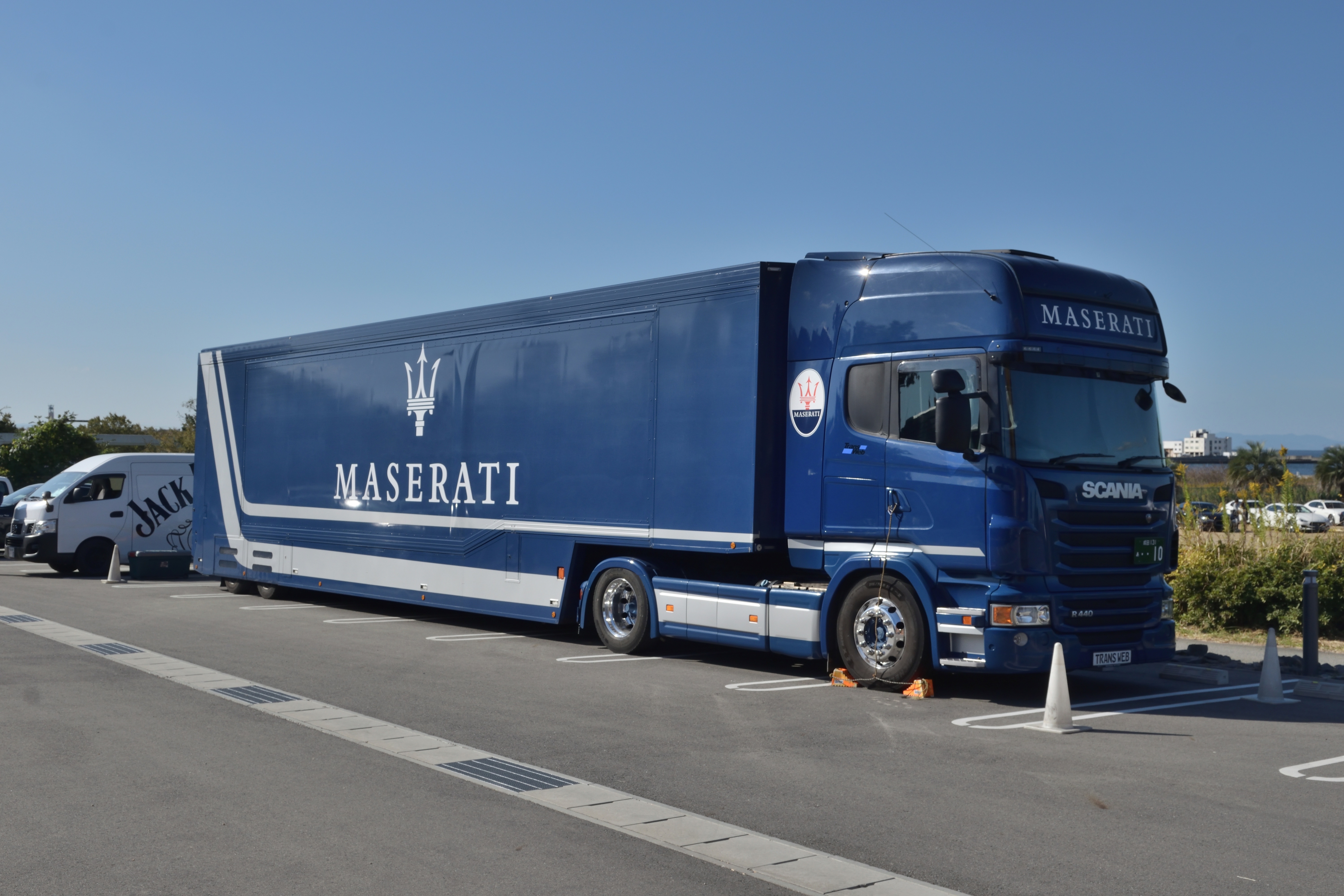 Avec l'apparition du nouveau logo, le transporteur "de marque" de Maserati Japan est passé du bleu au blanc =