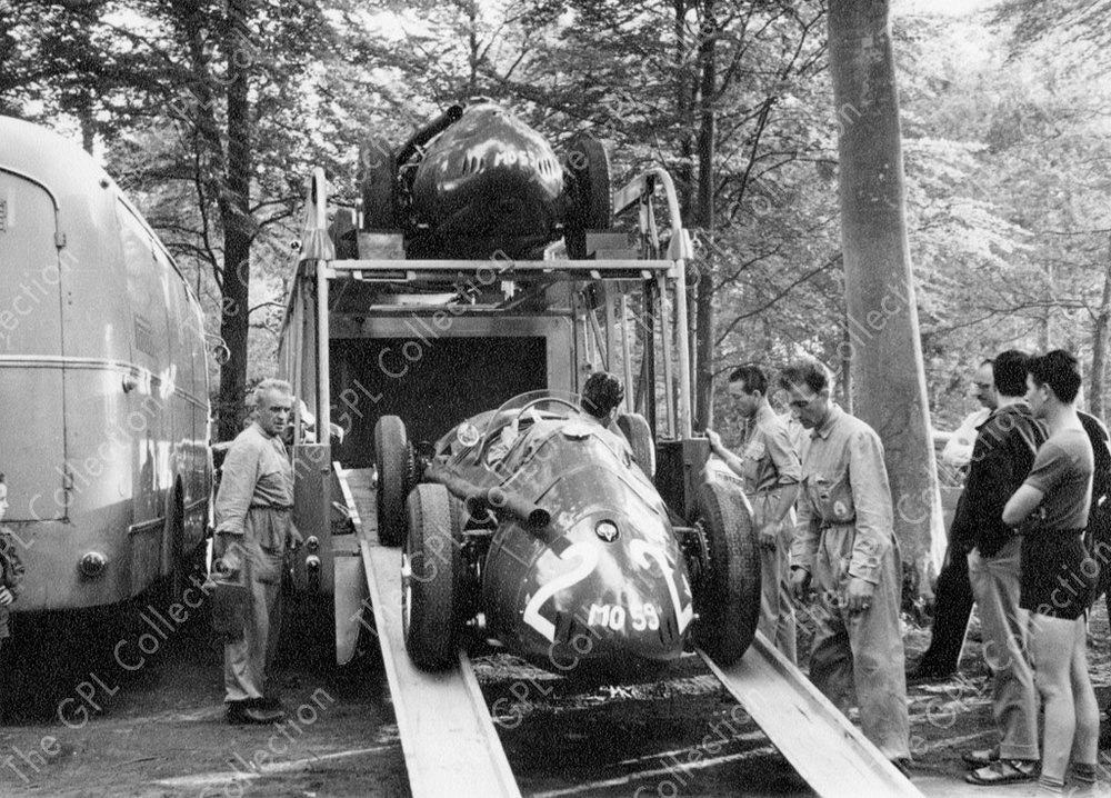 Un complément = le déchargement d'une 250F au GP de France à Reims en 1957