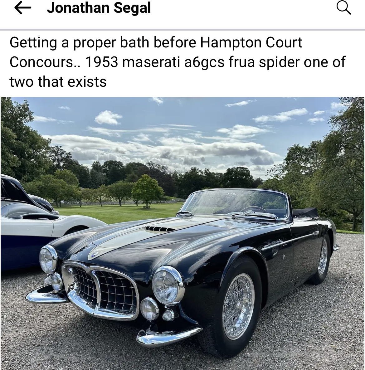 Ce week-end, se tenait en Angleterre le très prisé concours d’élégance au château d’Hampton Court et c’est une Maserati qui remporta le « best of Show » : l’A6GCS spyder Frua de Jonathan Segal.