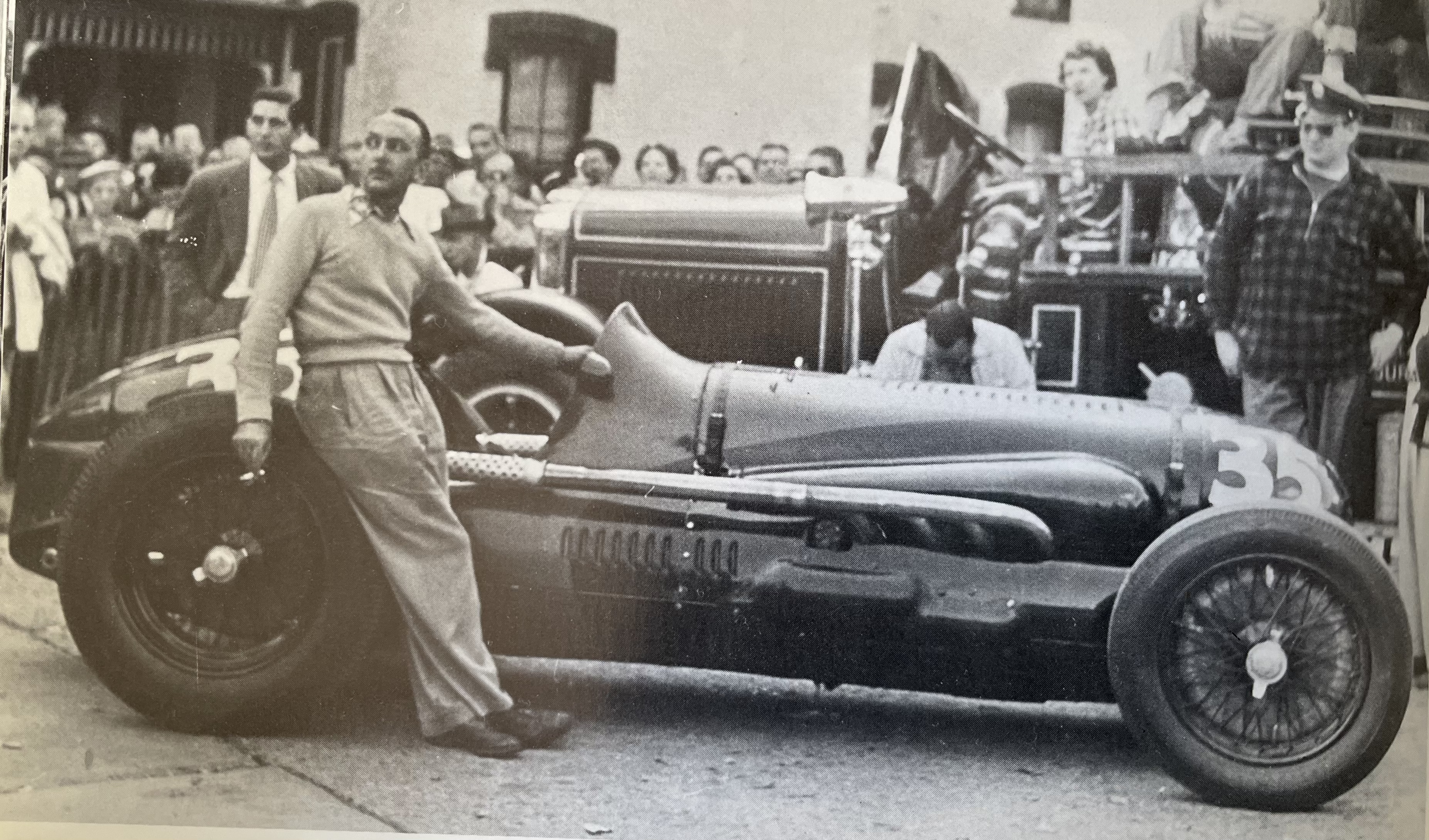 Deux jours plus tard, le 28 juin 1935 lors des essais de vitesse sur l’autoroute Firenze-mare, Guerino Bertocchi surveille la mécanique :