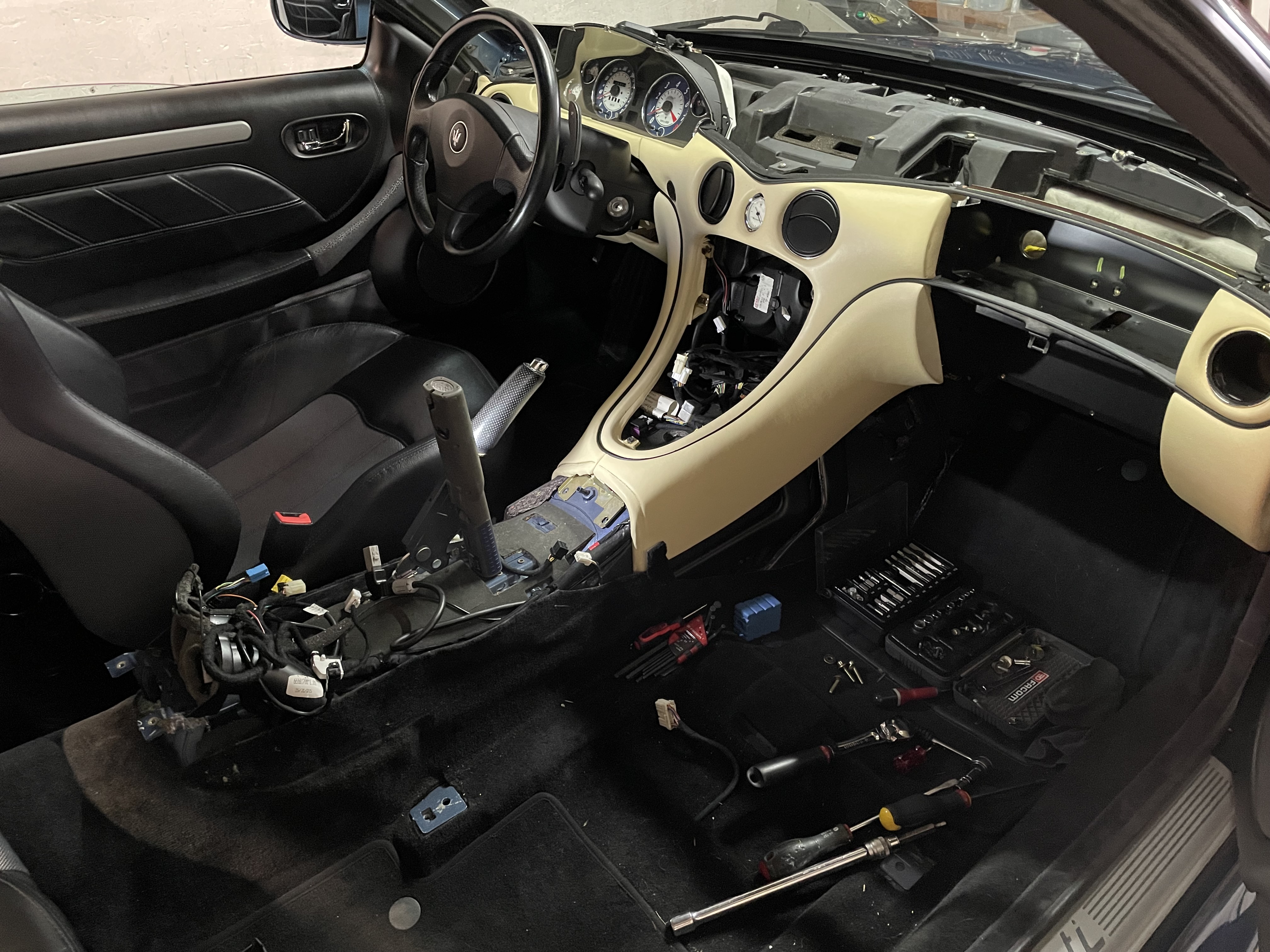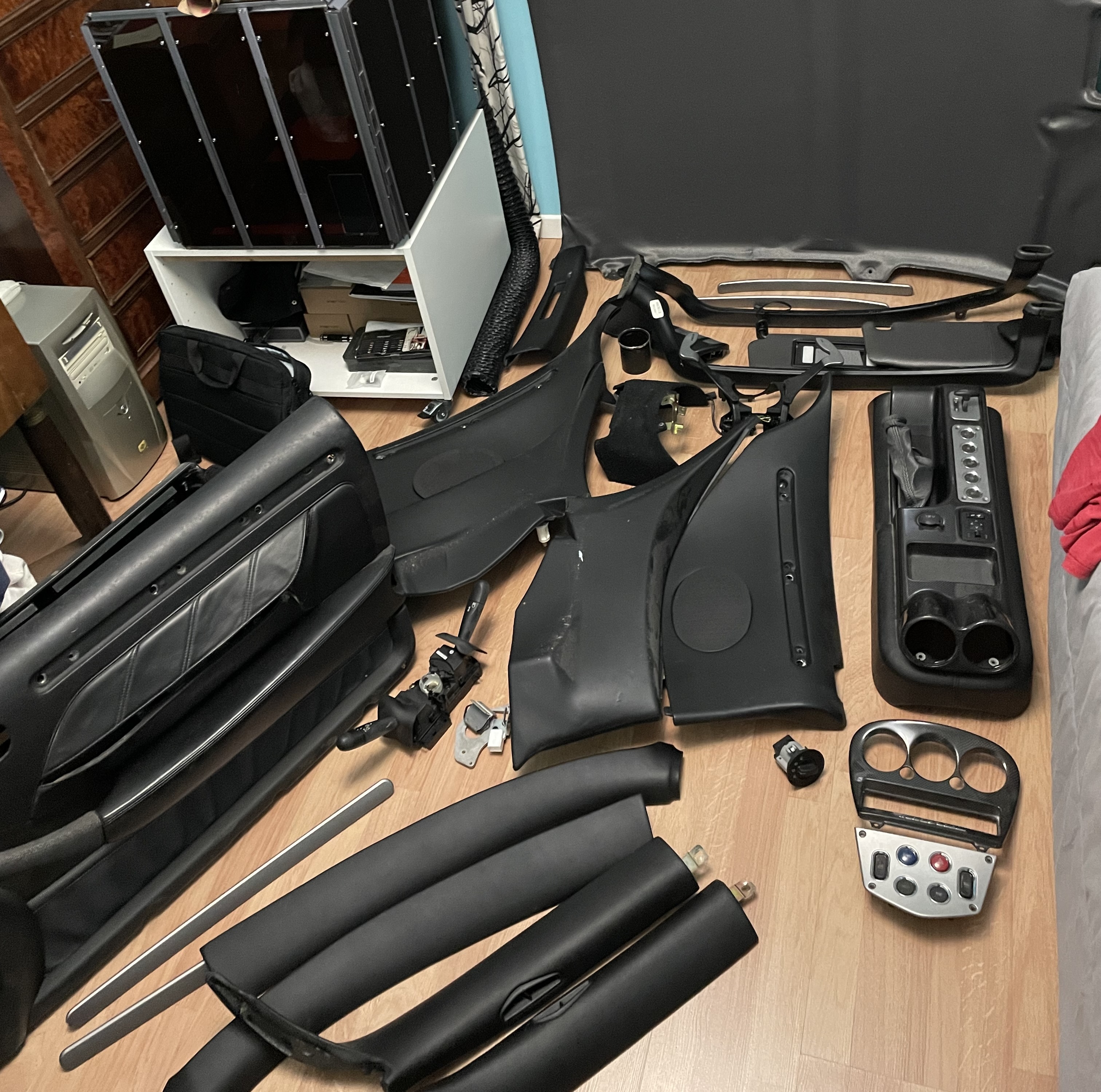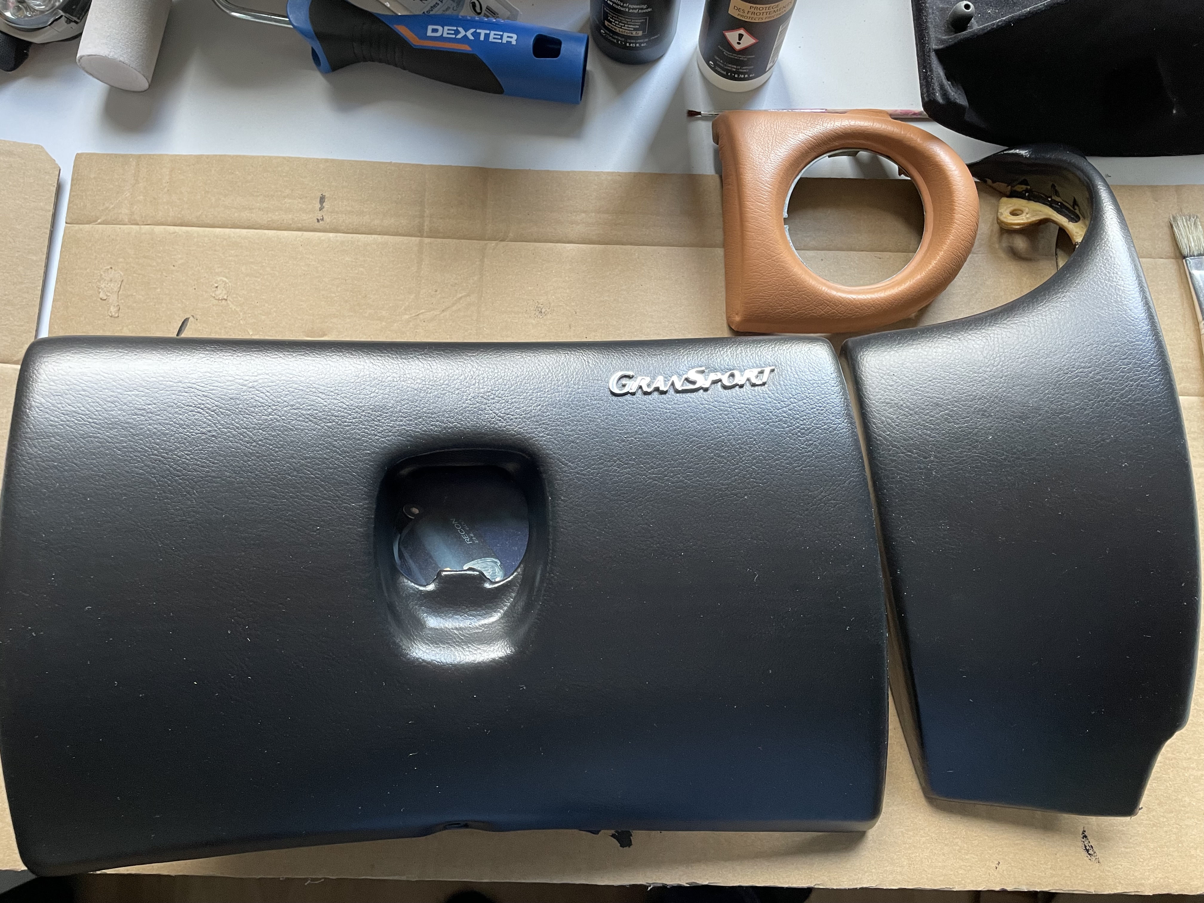 Tout commence avec la récupération chez Quentin d'un intérieur d'une GS accidentée RHD: Et je me retrouve avec une chambre bien occupée Il me manque cependant un tableau de bord LHD pour pouvoir faire cette conversion car impossible d'utiliser le tableau de bord de la version RHD dans ma voiture. Je trouve un tableau de bord le mois suivant (tout cuir): L'opération est lancée. Je commence par refaire une beauté aux sièges qui sont un peu griffés ou décolorés: Les produits de teinture cuir sont très efficace et le rendu est très agréable.