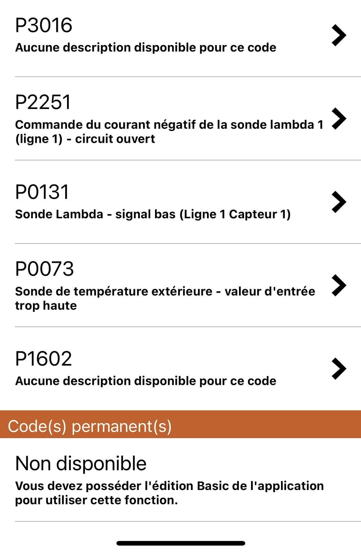 En mettant le lecteur ODB, j’ai ces codes erreurs :
