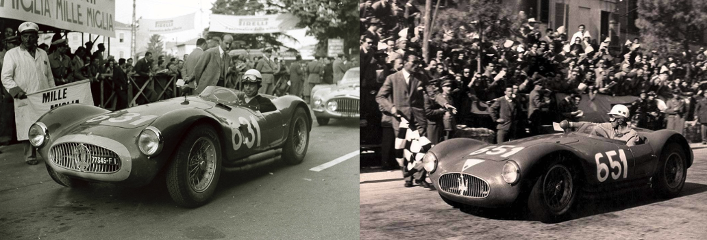 La légende automobile italienne s’est construite autour de courses sur routes ouvertes, à commencer par la Targa Florio créée en 1906, et bien sûr les Mille Miglia à partir de 1927. Alors qu’en France l’hécatombe du Paris-Madrid en 1903 (10 morts entre Paris et Bordeaux, dont le constructeur Marcel Renault) conduit les autorités à privilégier les courses sur circuit, les courses sur route italiennes attirent un très large public dans toute l’Europe et deviennent après la Seconde Guerre Mondiale un enjeu de communication pour les marques automobiles. Problème : les voitures n’ont pas à l’époque des logos de sponsors pour différencier les différentes équipes. Les couleurs sont définies par le pays du constructeur: rouge pour l’Italie, bleu pour la France, argent pour l’Allemagne,… Comment faire pour que le public massé au bord des routes puisse reconnaître sa marque favorite sur les voitures qui passent à grande vitesse ?