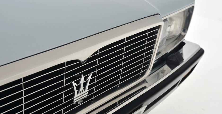 Avec la Quattroporte III arrive une nouvelle époque, puisque le badge au trident bleu et rouge Maserati disparaît complètement de la voiture. Il subsiste cependant, sur la malle arrière, sur la Royale. La Biturbo lancée en 1981 reprend cette configuration : trident sur la grille avant, badge avec logo à l’arrière. On n’a donc plus de double logo à l’avant à cette époque. La Ghibli II, puis la Quattroporte IV iront plus loin dans cette veine, en remplaçant le badge arrière par un second trident similaire à celui de la grille, puis sur la 3200GT, par Maserati écrit en toutes lettres.