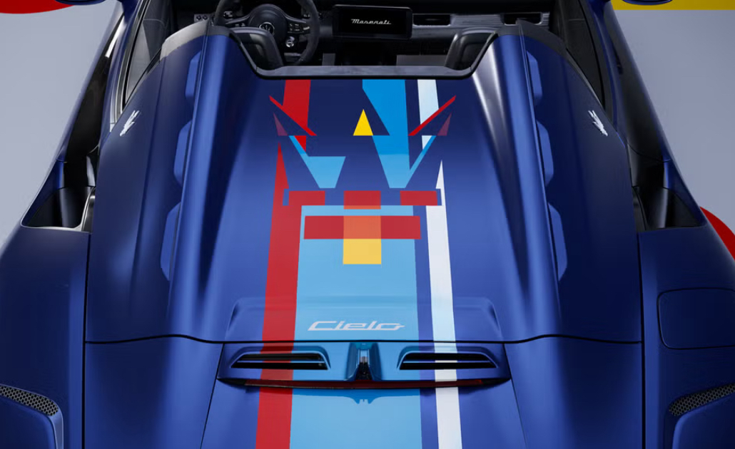 Un trident est formé sur le capot moteur par des formes géométriques de différentes couleurs qui s’inscrivent dans l’esprit du mouvement artistique Bauhaus.