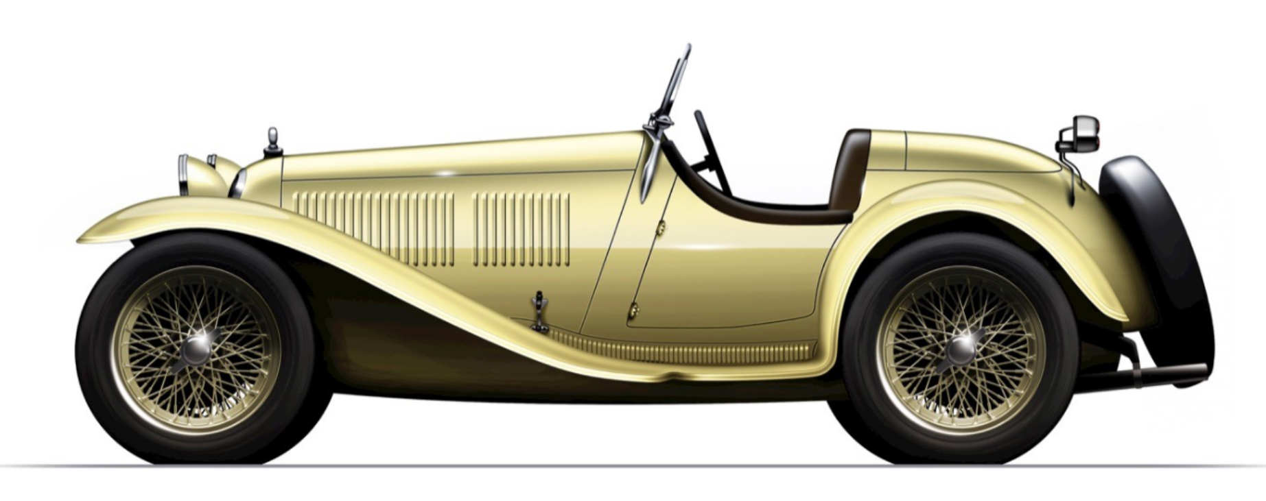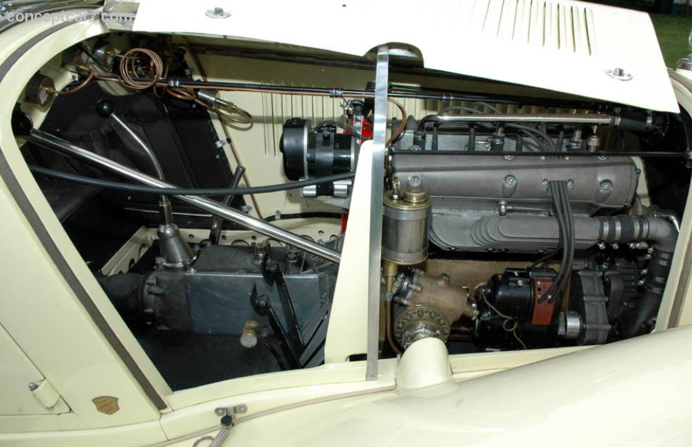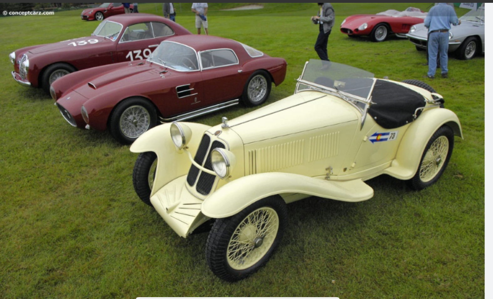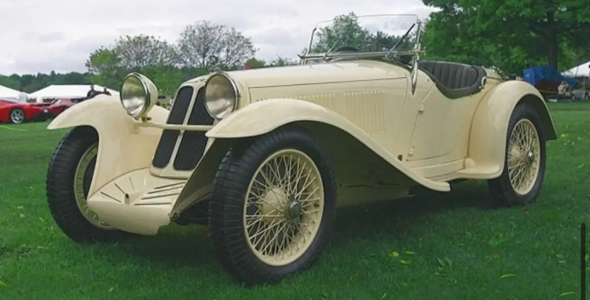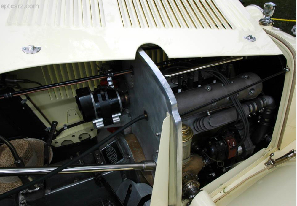 La 4CS #1114, carrossée par Brianza à Milan, fut construite en 1932 et équipée initialement d’un moteur 4 cylindres en ligne compresseur de 1100 cc délivrant 90 cv amenant les 700 kg de l’engin à 150 km/h :