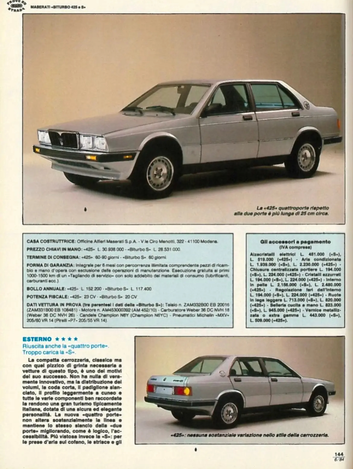 Chers amis Maseratistes, voici pour les italianophones un bel article très complet paru dans Quattroruote en juin 1984, il y a 41 ans, évaluant les deux premières déclinaisons de la Biturbo. Cliquez sur les pages pour mieux lire le texte :