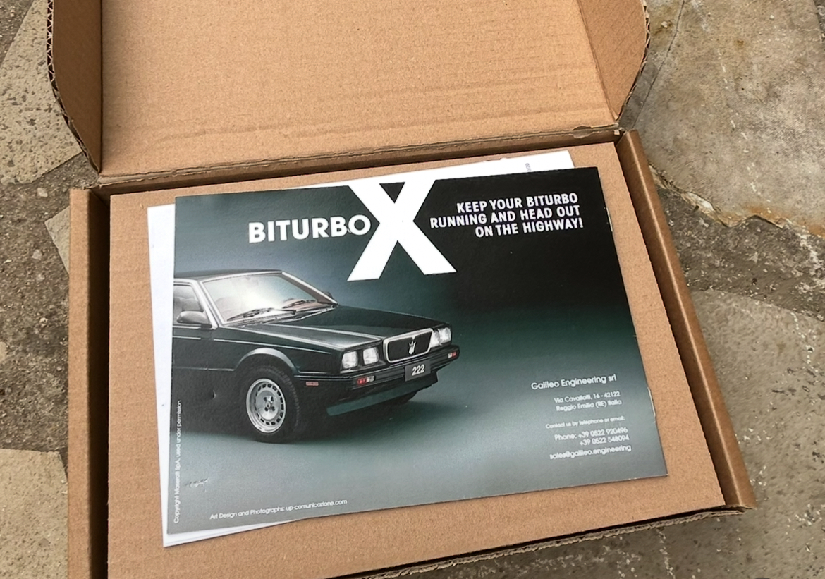 mon ami Frédéric Gonin (Maseralfa) et son assistant Lubain ont installé une Biturbox sur ma Biturbo Spyder, en remplacement de mon ancienne boîte à fusible qui donnait des signes de faiblesse (pas de veilleuses à l'avant ce qui a fait tiquer au contrôle technique, pas de fermeture centralisée, bruit du démarreur comme s’il n’avait pas assez de jus). C’est l’excellent Maurizio Ferrari (malgré son nom de famille, il est l’un des piliers du Biturbo Club Italia) qui a mis au point et commercialise cette boîte à fusible moderne. Elle ressuscite les Biturbo ! Je vais vous décrire l’opération de remplacement qui est quand même un peu délicate à cause de l’accessibilité. Par contre, la Biturbox s’insère facilement pîle poil dans le boîtier plastique originel. Comptez 1 h et demi de boulot.